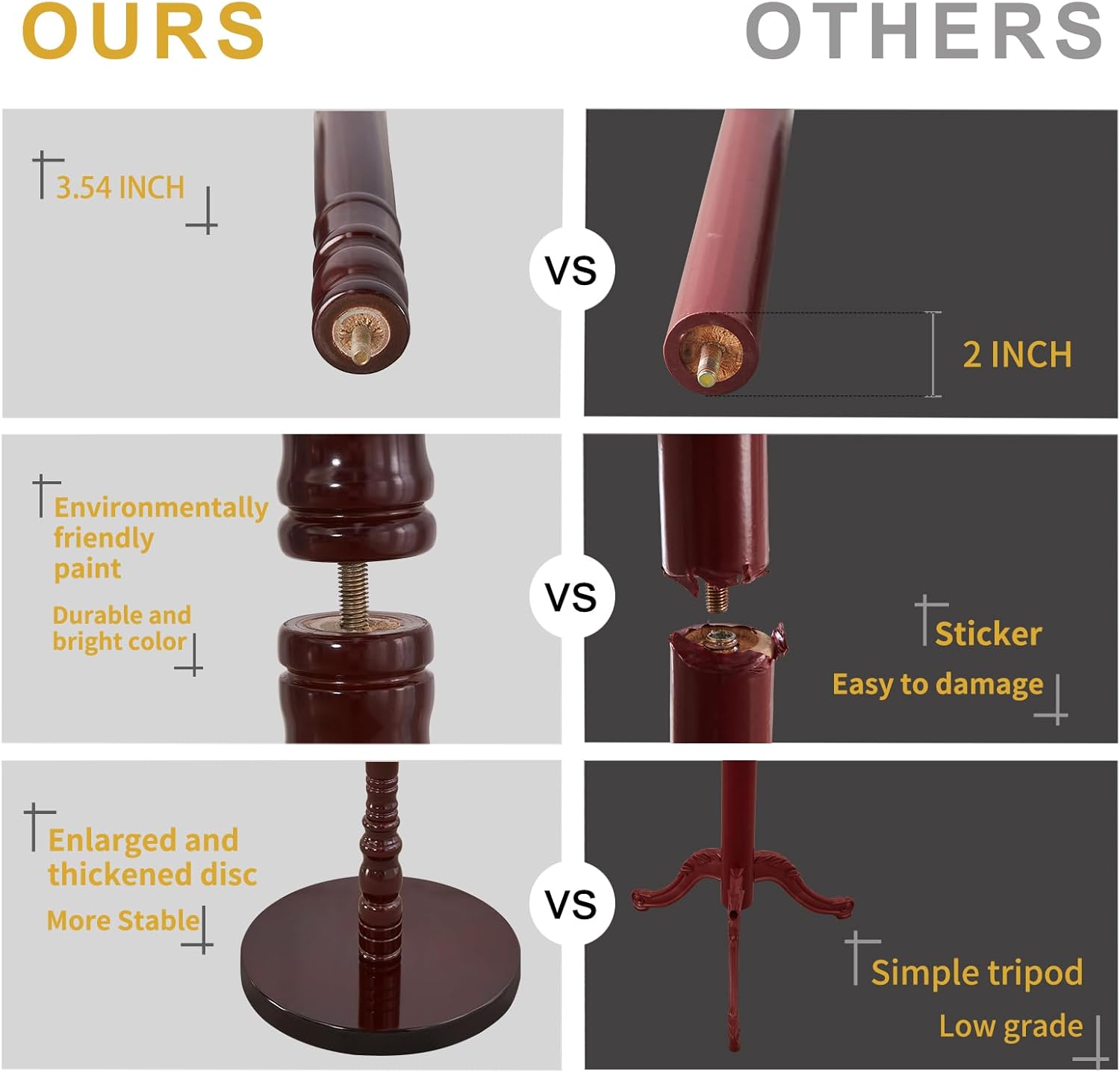 - 100% NATURAL BIRCH WOOD: Snikor Wooden Coat Rack's main pole is made of 100% natural birch wood. The wood has a natural grain and high-end mahogany color finish. Natural birch wood is hard wearing and not easy to crack characteristics, able to decorate any style