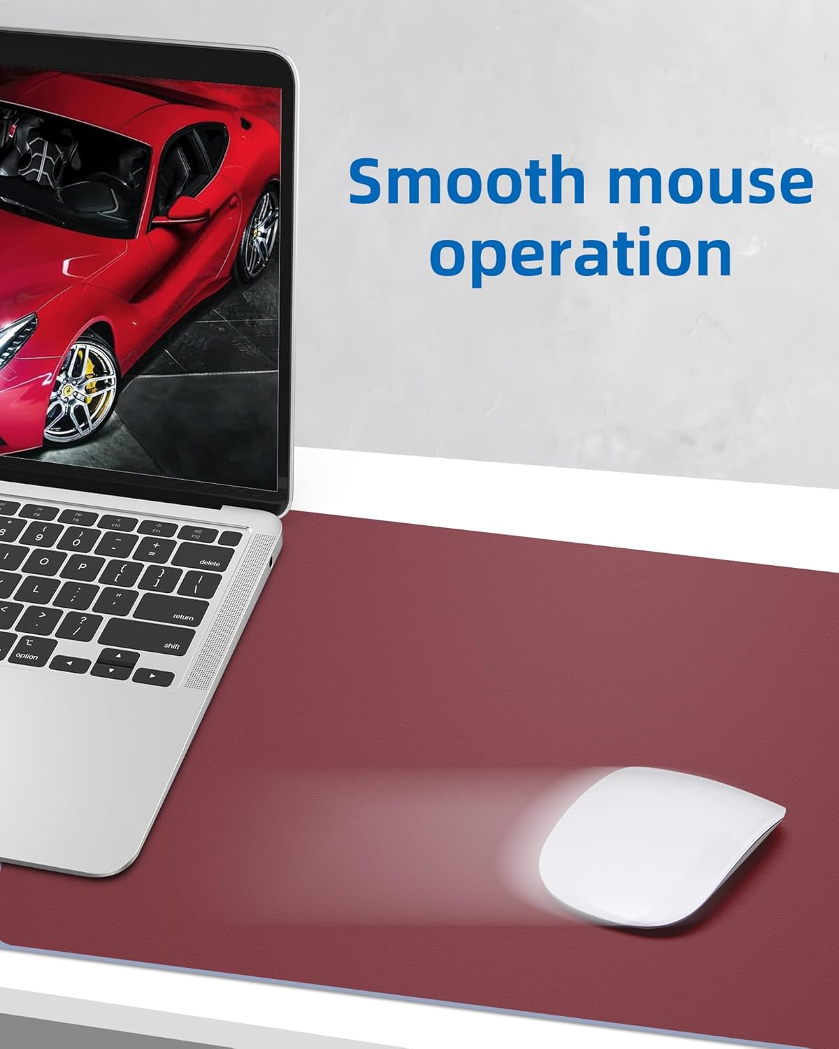Leather Desk Pad Protector,Mouse Pad,Office Desk Mat, Non-Slip PU Leather Desk Blotter,Large Desk mat,Waterproof Keyboard mat for Office/Home/Decor (Burgundy Red,55" x 17")