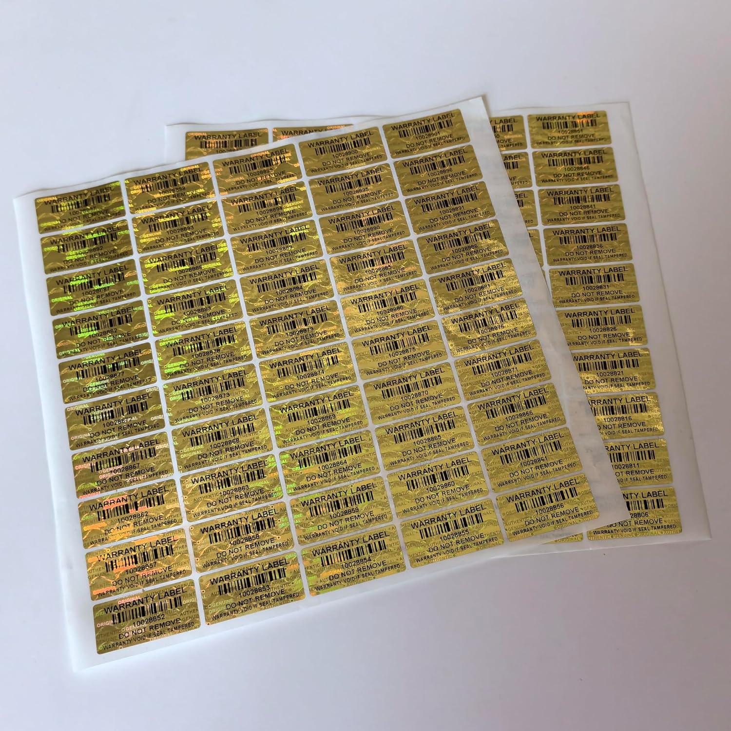 520pcs Tamper Evident Proof Stickers with Barcode Hologram Security Labels Genuine Warranty Seal with Unique Serial Number(1.2 X 0.6 Inch Gold)
