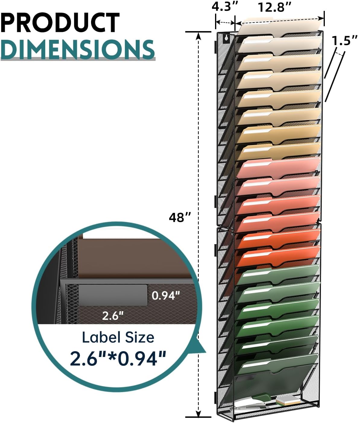 - [Optimized Space Utilization] With 21 cascading slots, this wall file organizer provides ample space for your office files, accommodating letter-size charts, files, notebooks, and more.