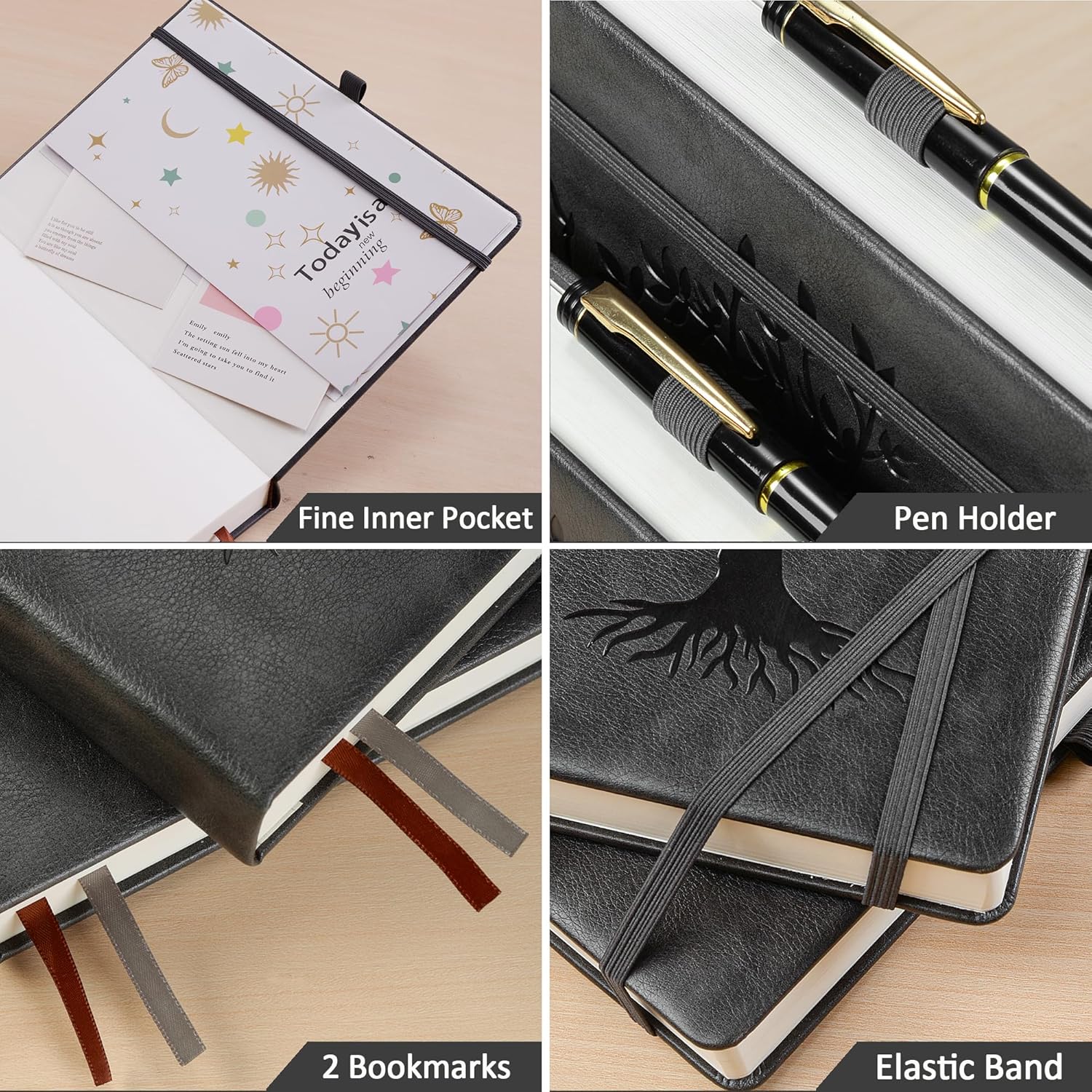 ZXHQ B5 Bullet Dotted Journal Notebook:150gsm Thick Paper, 256 Pages, Dot Grid Hardcover, Tree of Life Design, Fine Inner Pocket - 7.7" × 10" Dark Grey