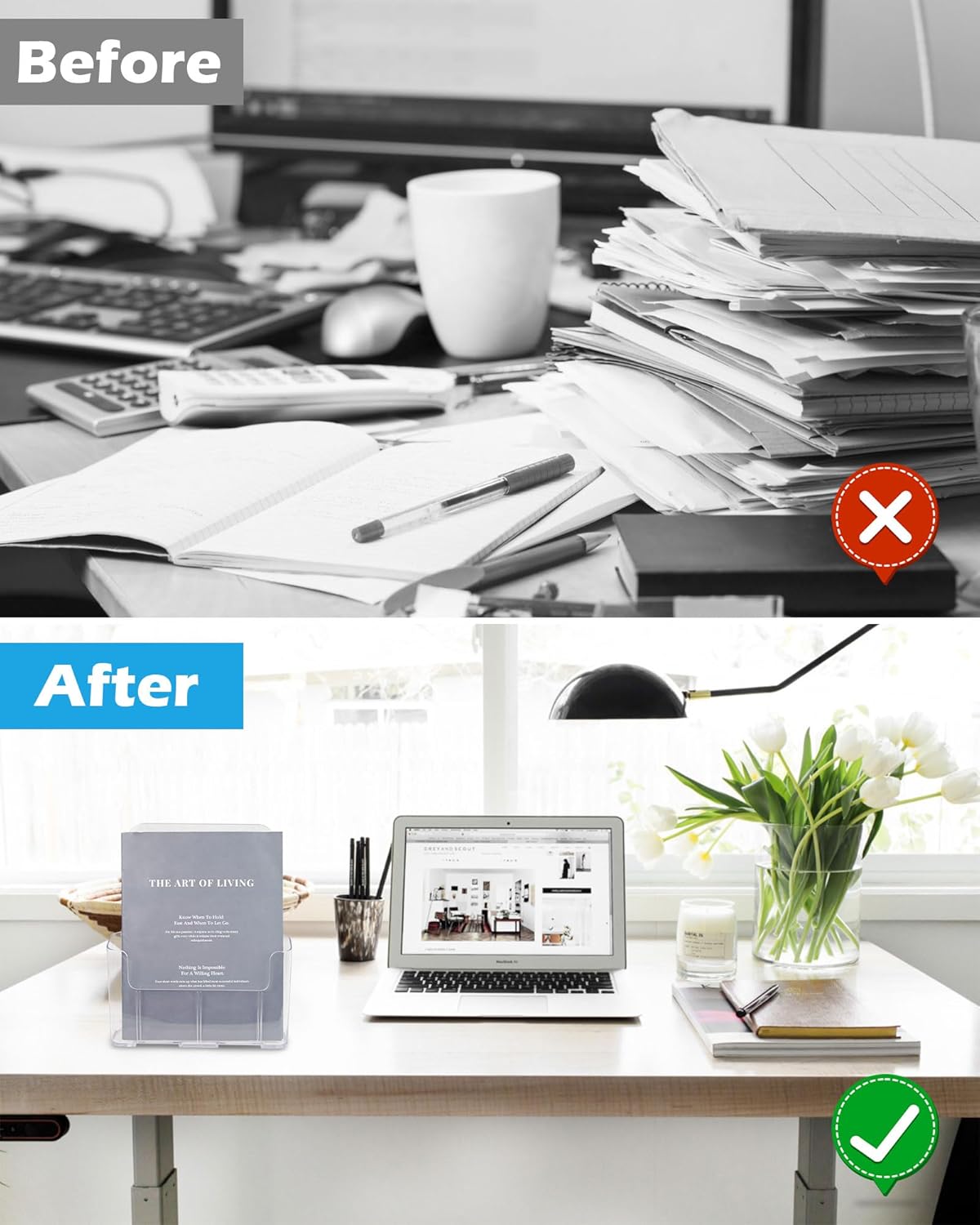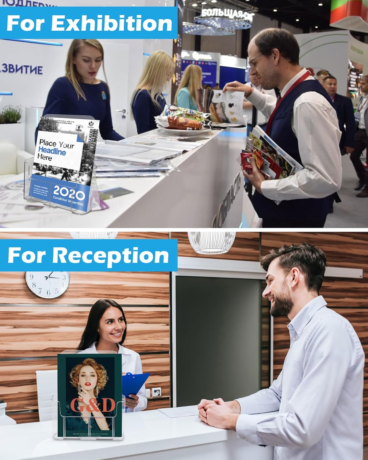 - Stable/Tabletop&Wall Mount: The acrylic display stands features a slanted back design for stability on any desktop. The anti-slip slots keep your brochures neatly displayed and prevent the bottom from curling or warping. Two holes in the back for optional wall mount use