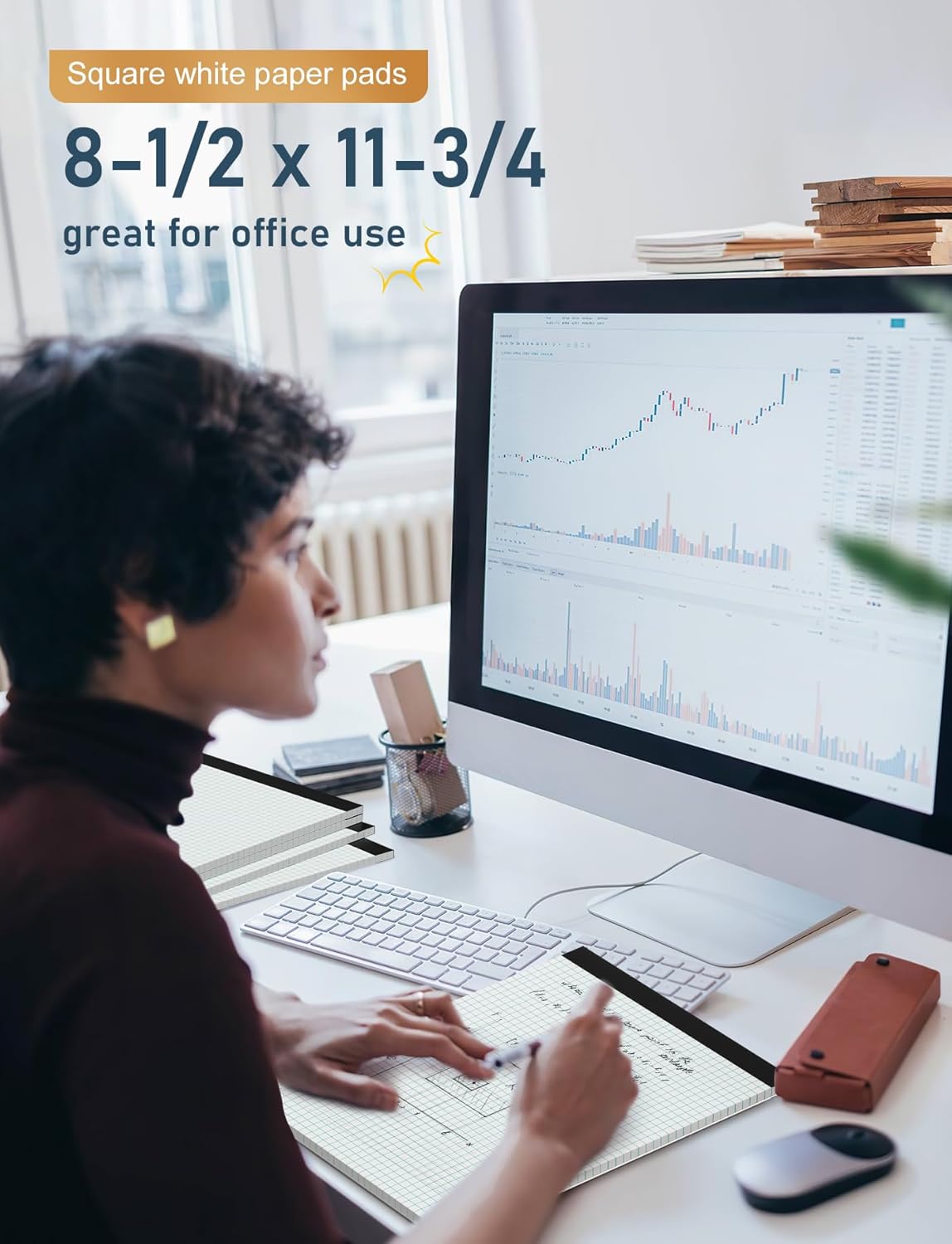 - Cardboard Backing: The hardboard back of the grid paper notebook 8.5 x 11 made of quality card stock material for writing support. The sturdy backing of the grid paper notepad paper offers additional stability while you write, draw, and design, 8-1/2 x 11 graph paper pad allows you to take notes without a table or desk to lean on.
