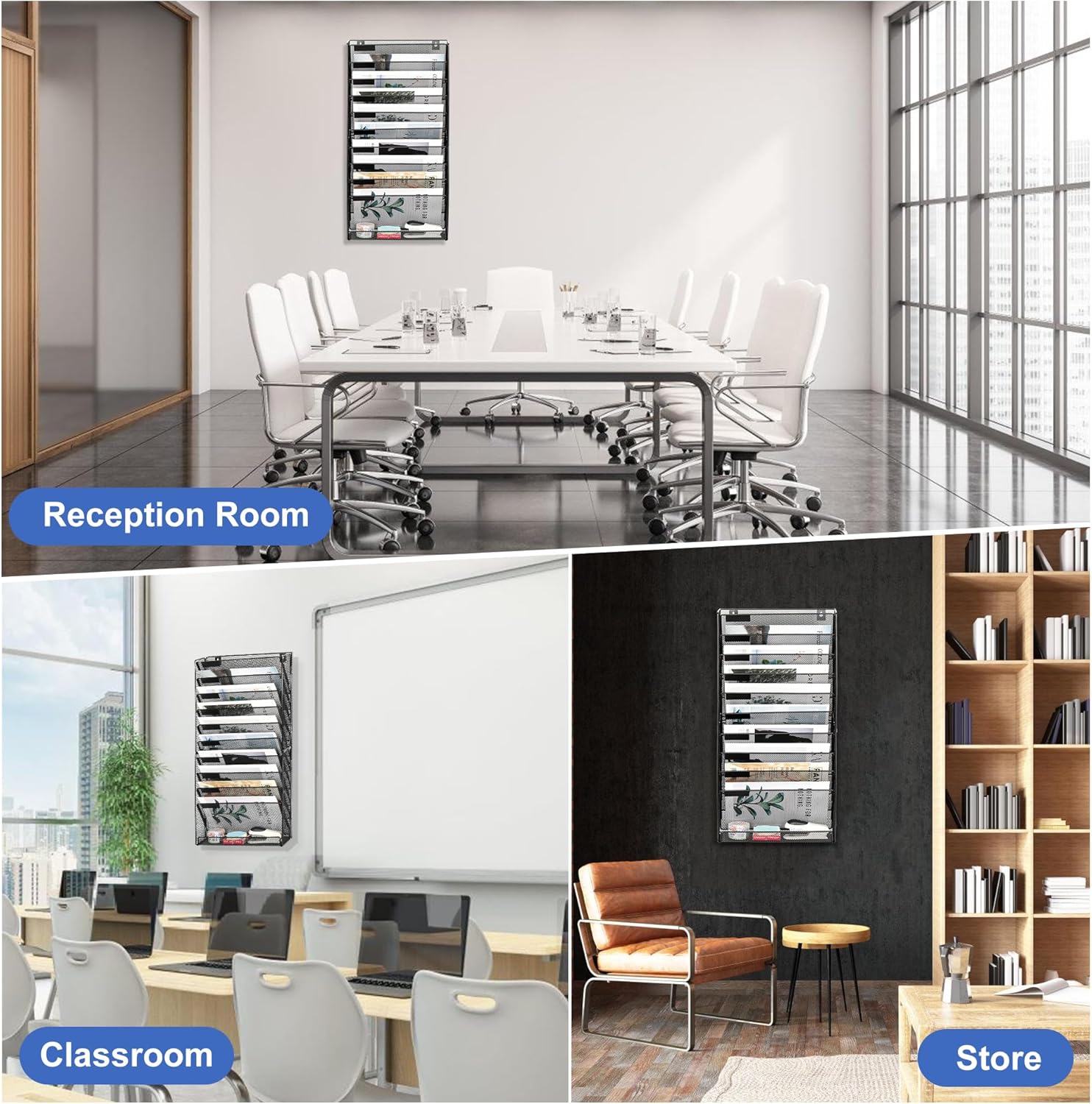 - Space-Saving Vertical Design: Compact wall file holder (12.79”x4.33”) frees desk space. Bottom tray organizes pens/keys. Perfect for dorms, small offices, retail counters.