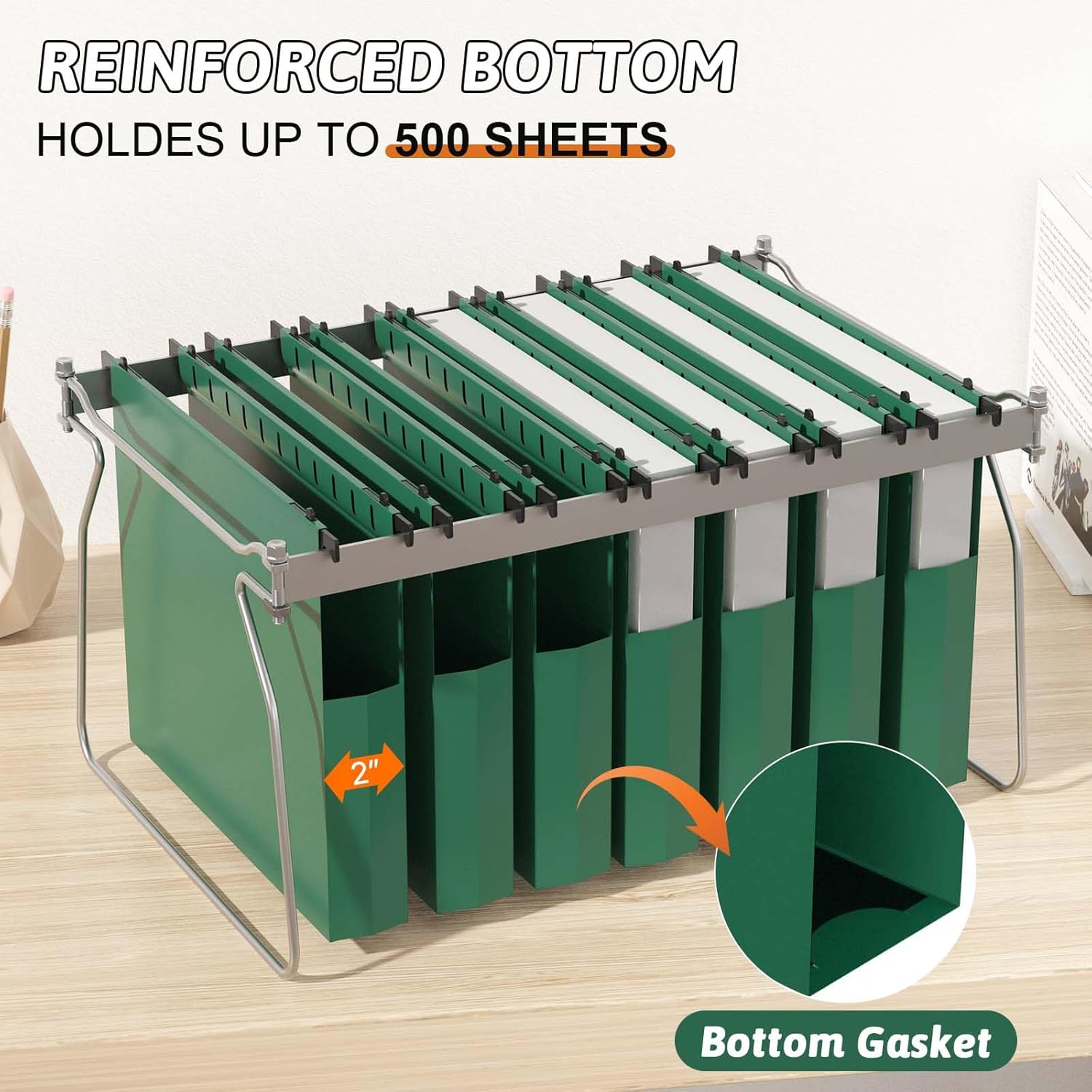 - 【EXTRA CAPACITY & REINFORCED BOTTOM】: The extra capacity hanging file folders buttom 2" expansion design for up to 500 files at once; includes black plastic plate-reinforced insert for extra support on bottom panel.