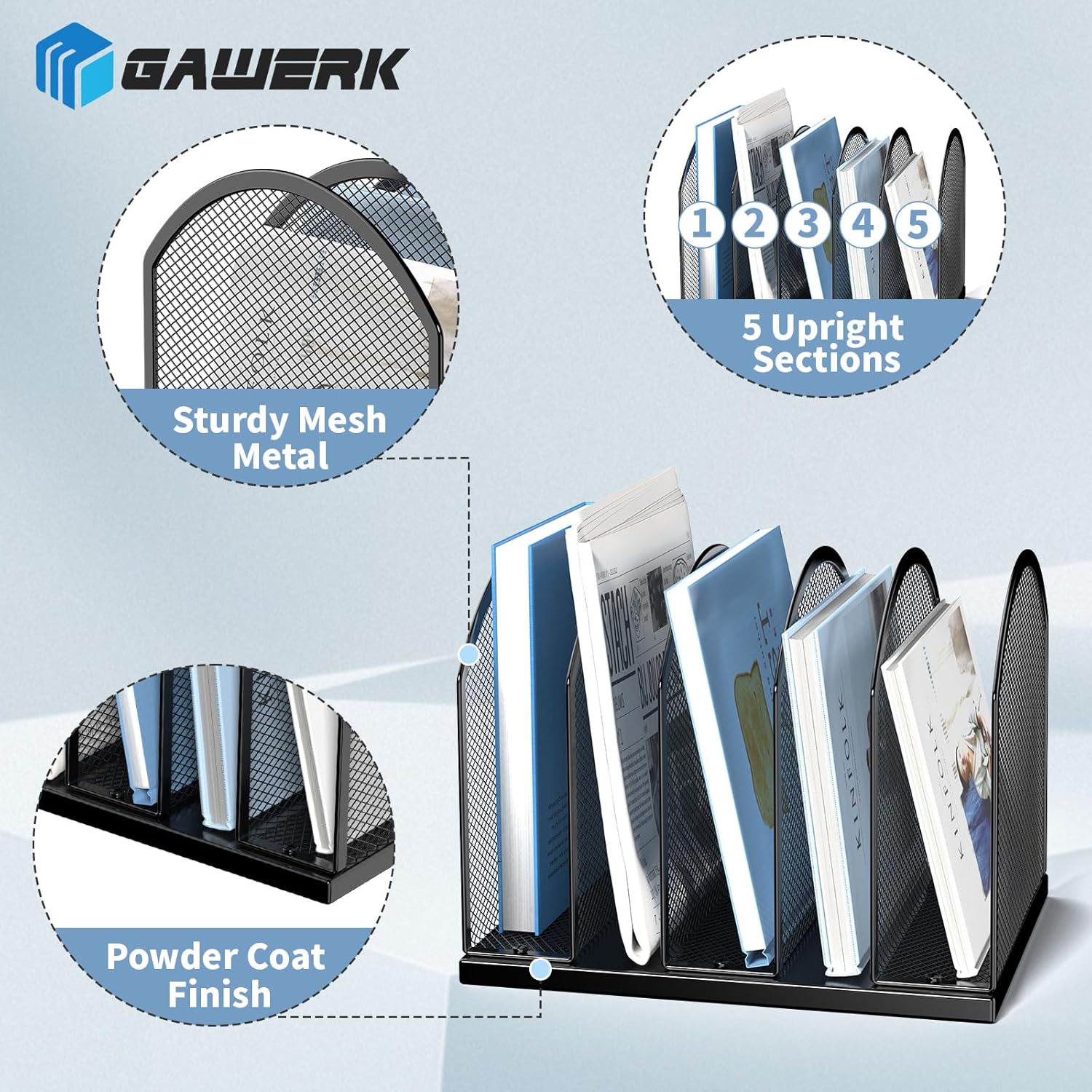 5-Section Vertical Desktop Organizer, 5-Section Mesh File Folder Stand Sorter for Office Home Classroom Organization (1, Black)