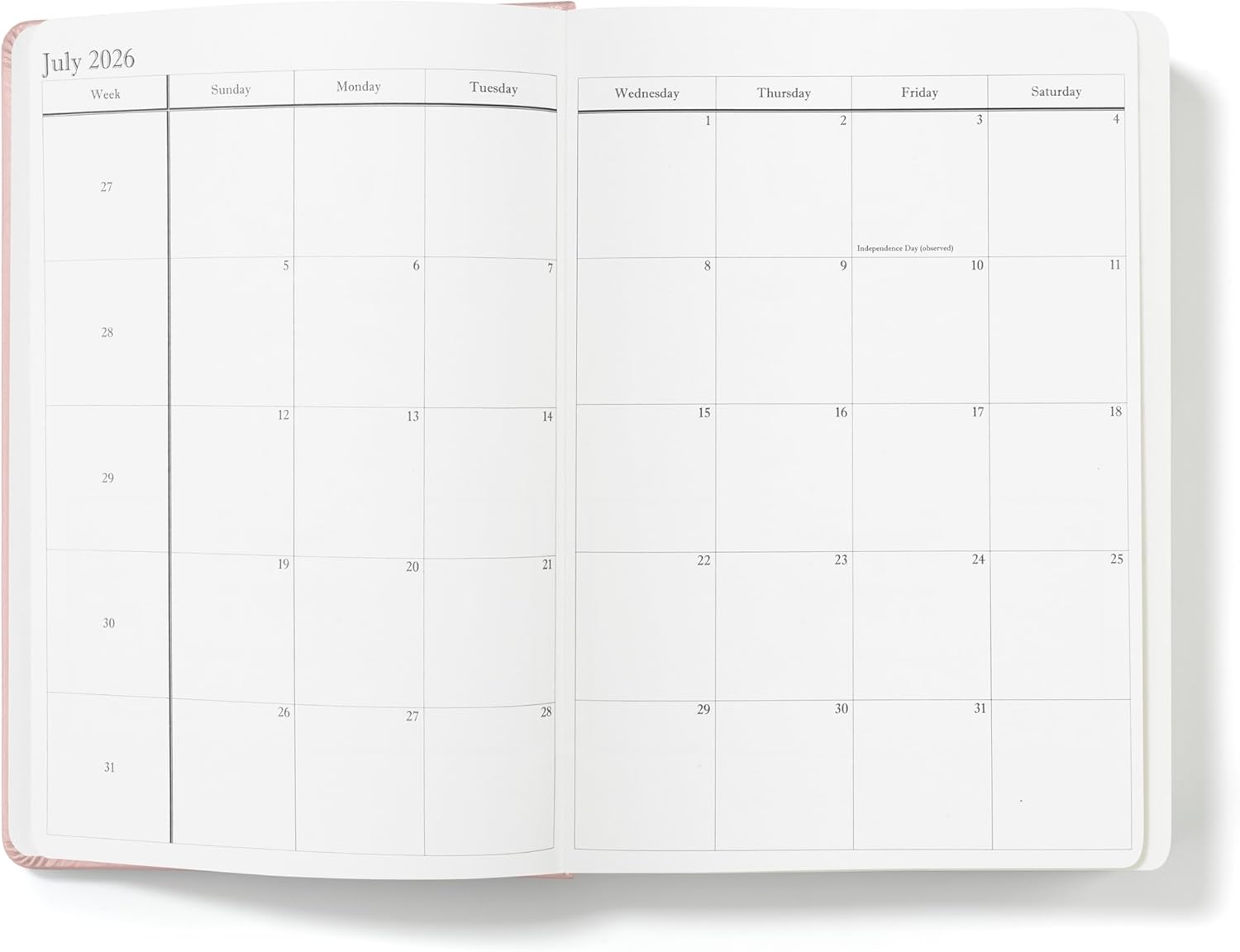 Wykeham's Executive 2026 Daily Journal Planner – US Public Holidays & Format – Customization Available (Rose, 8.5"×5.5")
