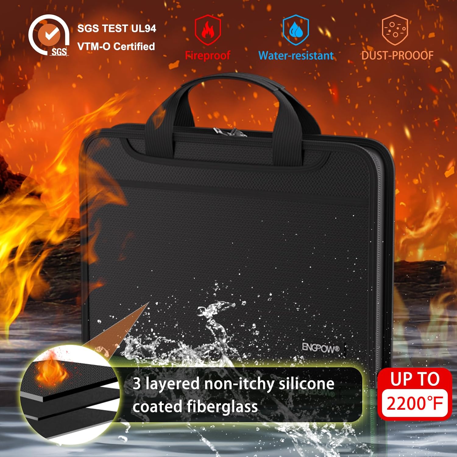 - High-Quality Materials: Protect your files with ENGPOW fireproof accordion file organizer.It is made of 3-layered non-itchy silicone-coated fiberglass which withstand the temperature up to 2200℉.It has been passed by SGS TEST(UL94 VTM-0 Certified).Fireproof File Folder is fireproof&Water-resistant,which can effectively protect your important documents in a fire,flood,and wet weather. They will further keep your files intact.Giving you time to save your important documents when disaster strikes