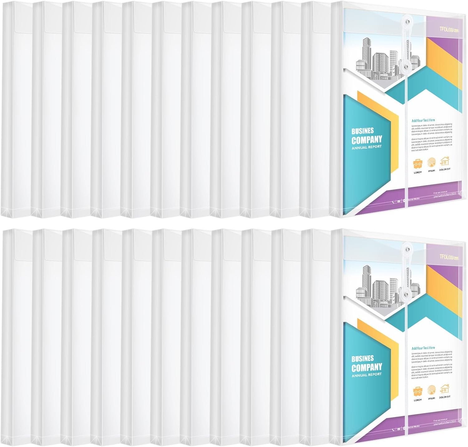 24 Pack Clear Plastic Envelopes with String Closure,A4/US Letter Size,Poly Reusable File Folders Project with1-1/4"Expansion,Paper Documents Organizer for Home, Office and School.