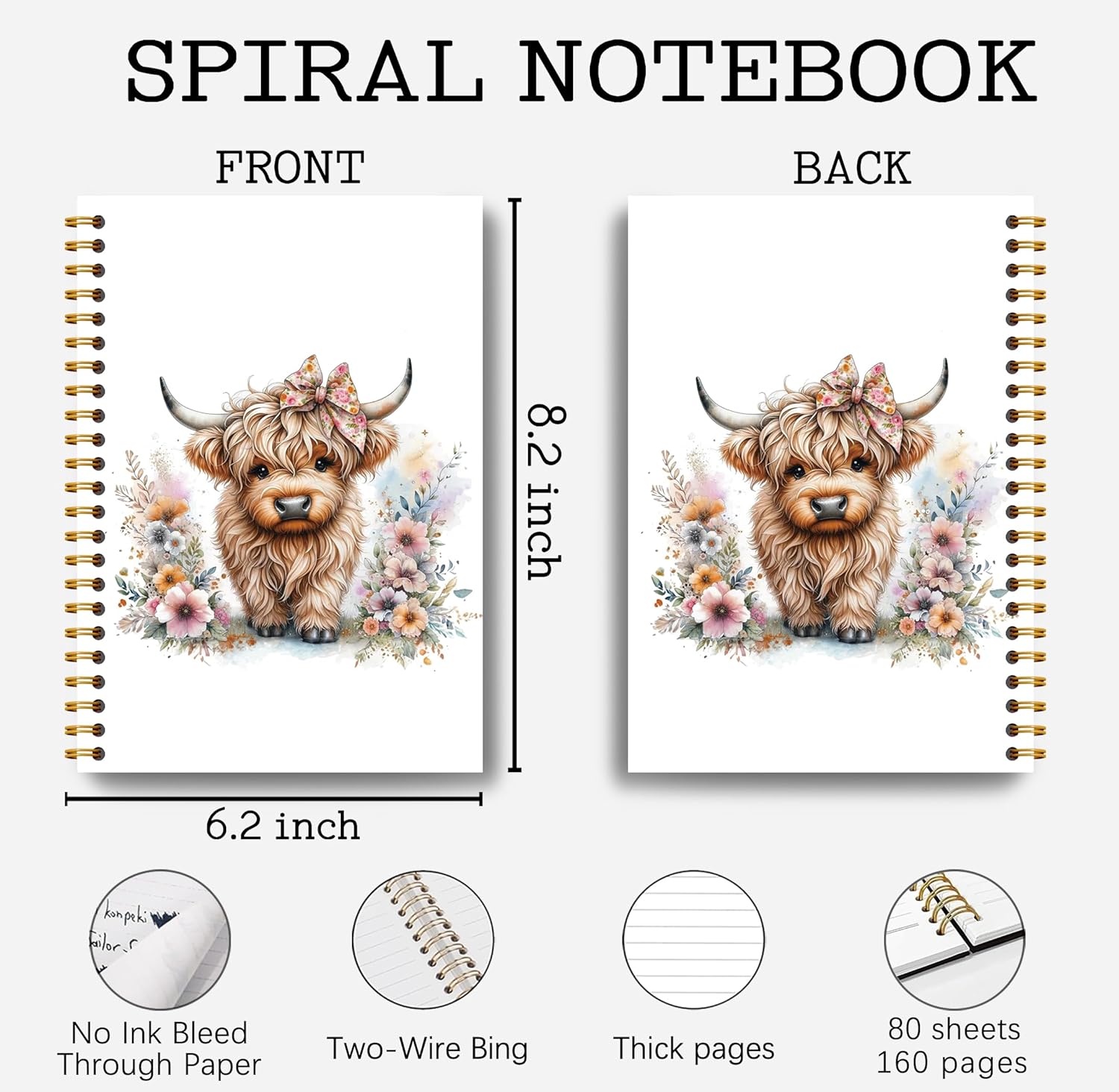 Floral Highland Cow Notebook - Western Notebook, Cow Notebook, Highland Cow Office Supplies, Highland Cow Gifts, Cute Highland Cow Stuff, Farmhouse Highland Cows Spiral Notebook 5.5x8.3