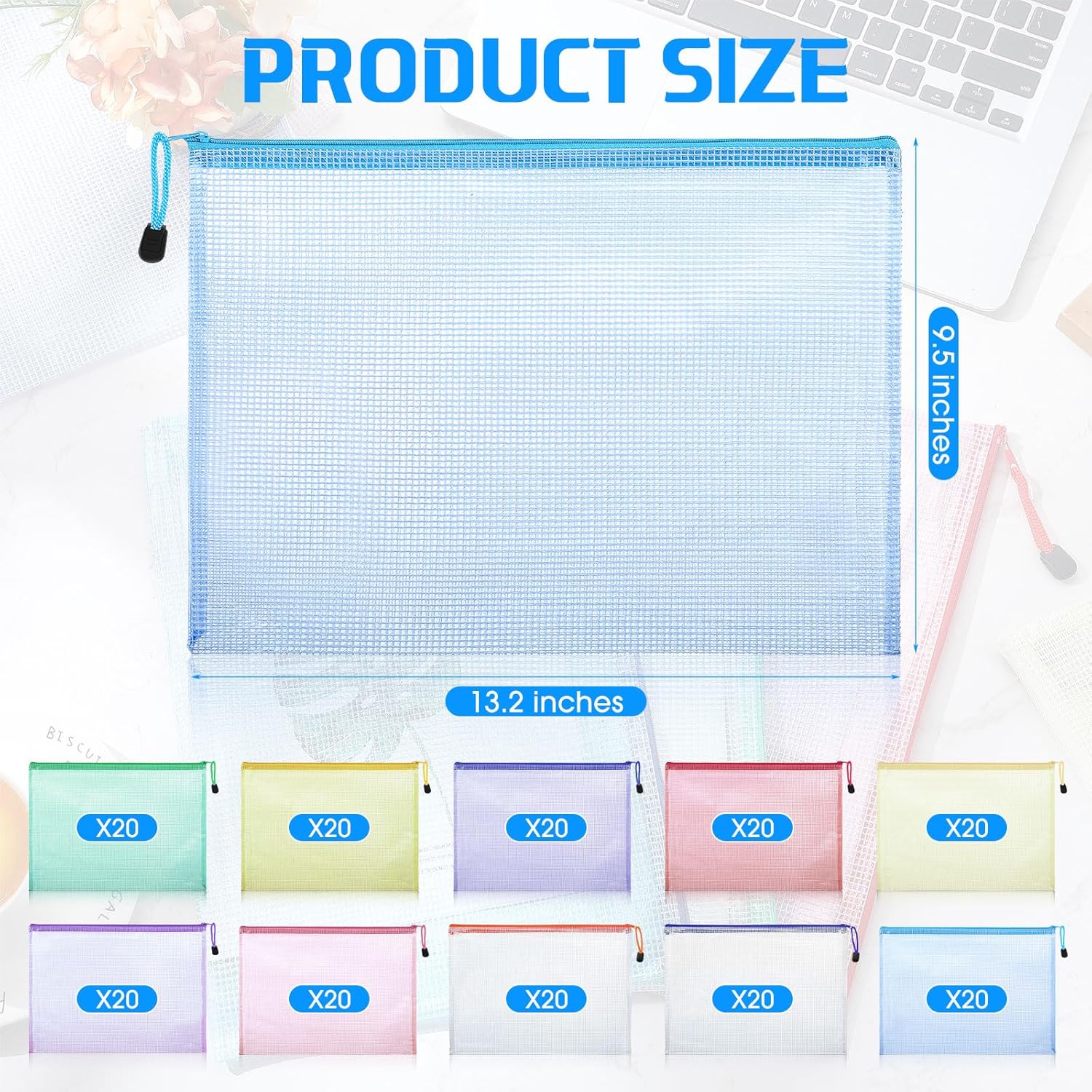 - Package Includes: you will get 200 pieces mesh zipper pouch, each measuring 9.5 x 13.2 inches, there are 10 different colors, 20 pieces of each color, sufficient quantities to meet your daily school and work needs, these zipper pouch bulk could be applied as school event prizes or class gifts, ideal for students who are about to back to school