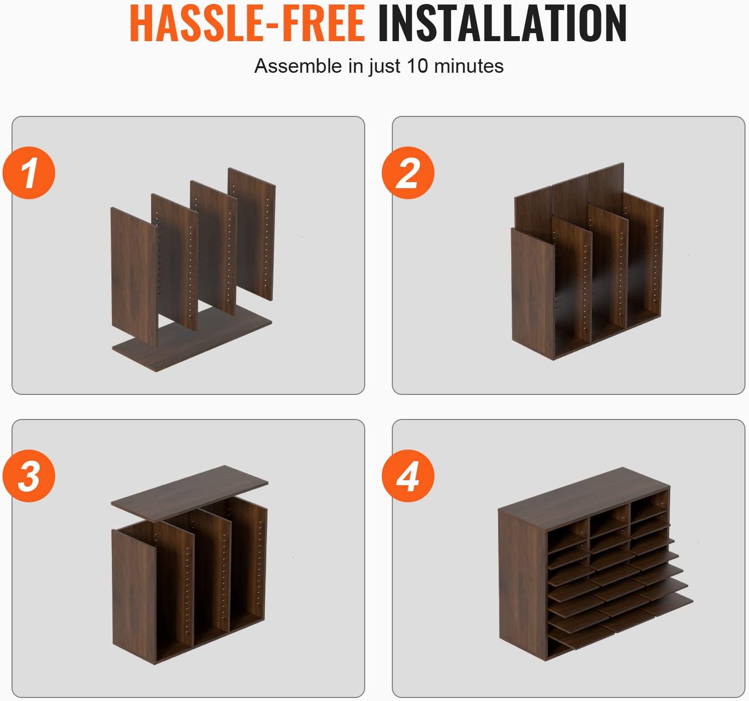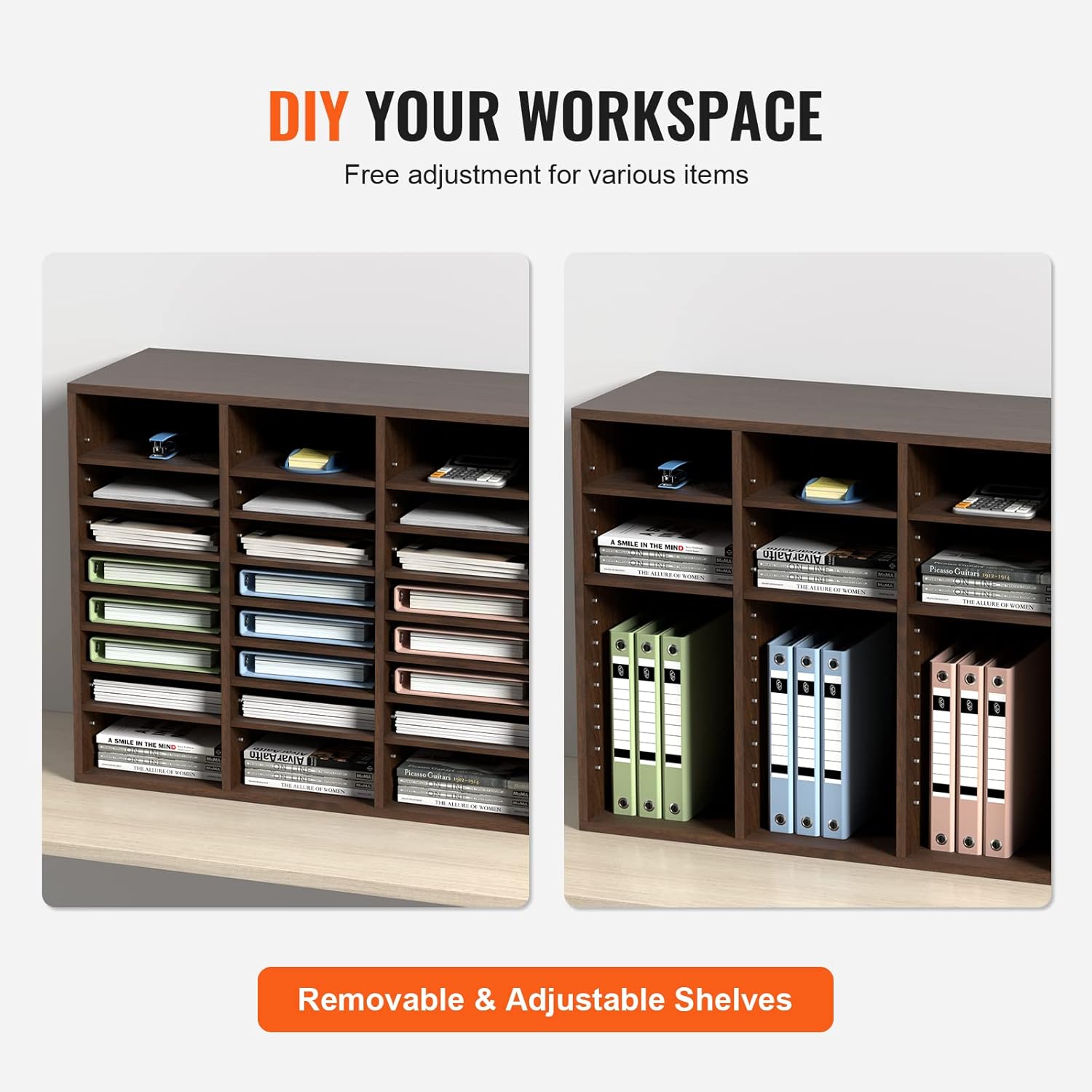 VEVOR 24-Compartment Office Mailbox, Adjustable Shelves, Wood Literature Sorter 29x12x24.4 inches – Ideal for Office, Home, Classroom, Mailrooms Organization – EPA Certified (Brown)