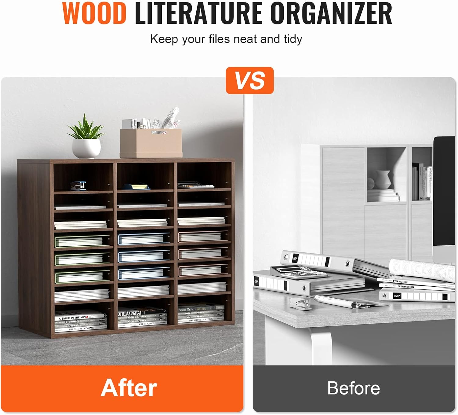 - Space Maximization: With 24 compartments organized in 8 rows and 3 columns, the VEVOR 29''x12''x24.4'' wood literature organizer provides extensive storage capacity for various items, ensuring a clutter-free desktop.