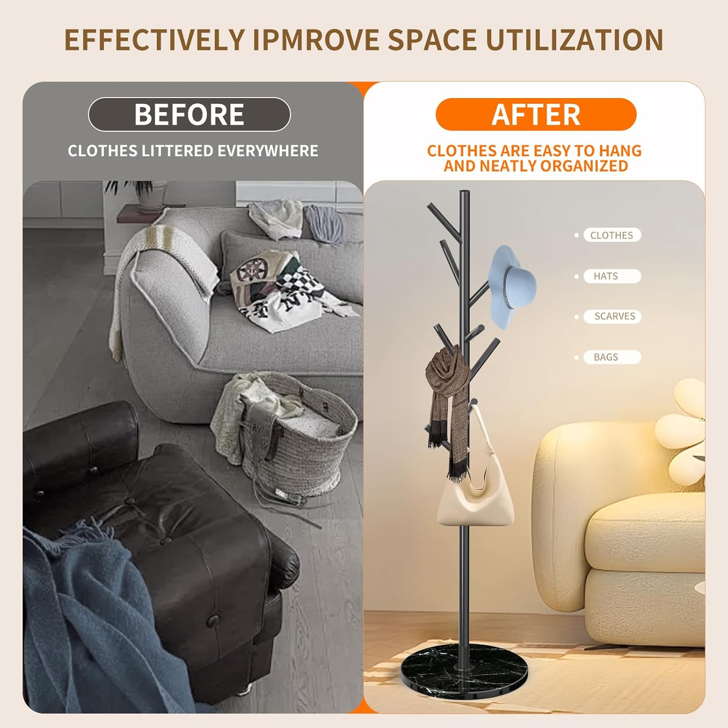 - EASY TO INSTALL: The standing coat rack comes with easy-to-understand instructions and tools, and it can be easily installed in just 5-10 minutes. Then you will get a small furniture that is both economical, beautiful and practical