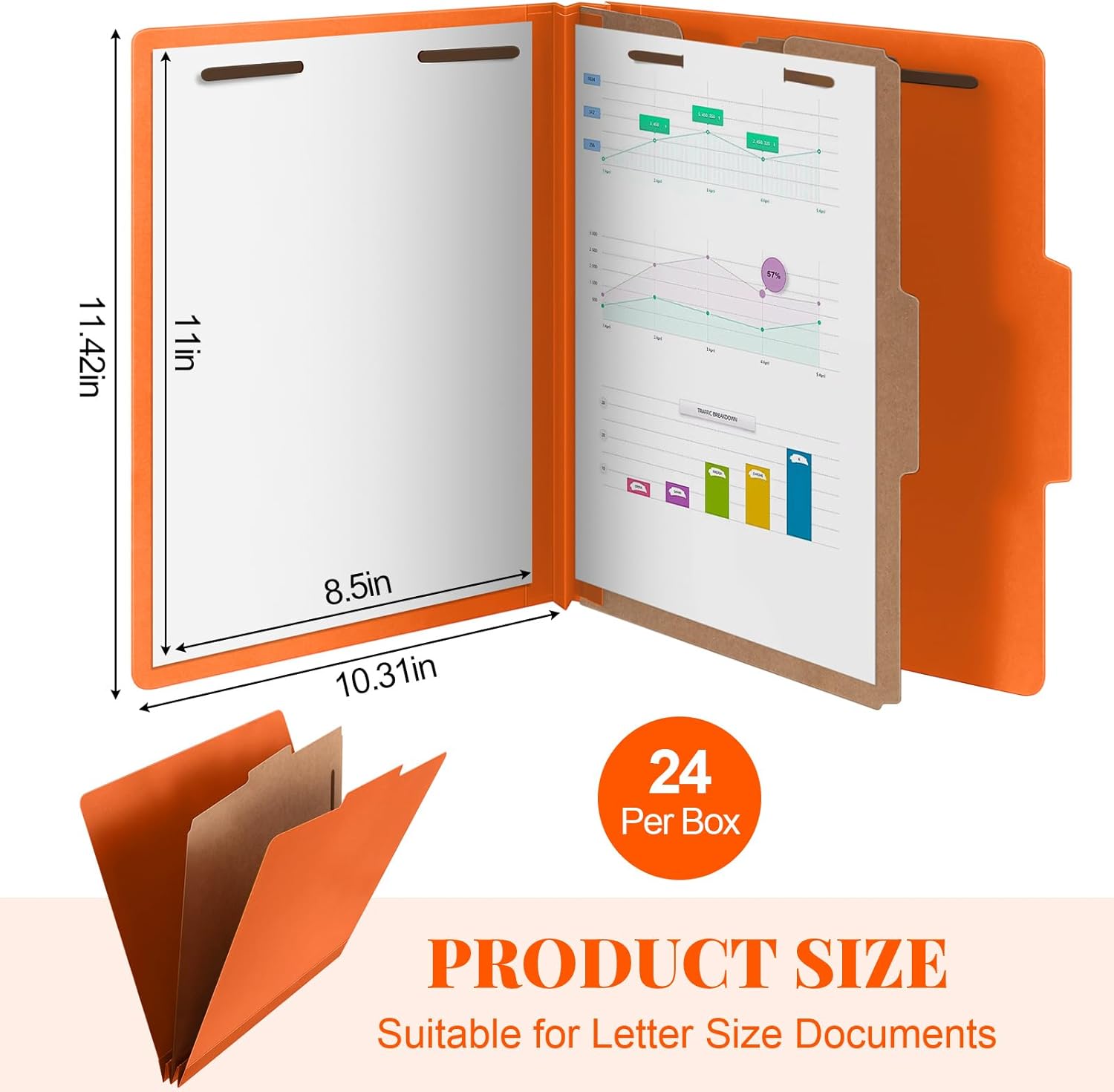 24 Pcs Classification Folders Letter Size, 1 Divider Pressboard File Folder with Fasteners, Expanding File Organizer Bulk for Teachers, Clergy, Office, Church, Christmas Donations (Orange)