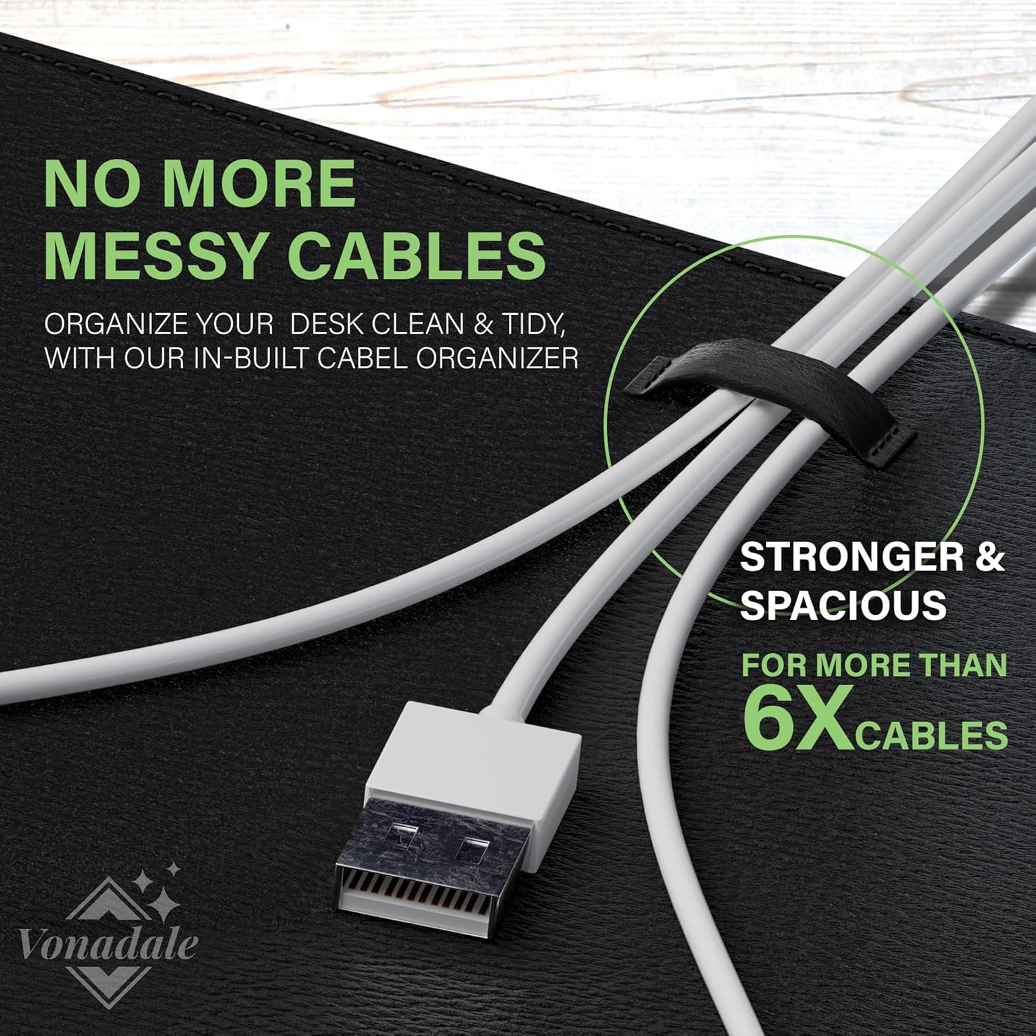 Leather Desk Mat for Keyboard and Mouse, Office Desk Mat Cable Organizer, Black 13.8" x 23.6"