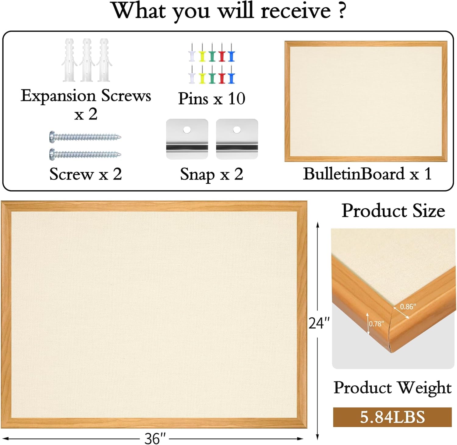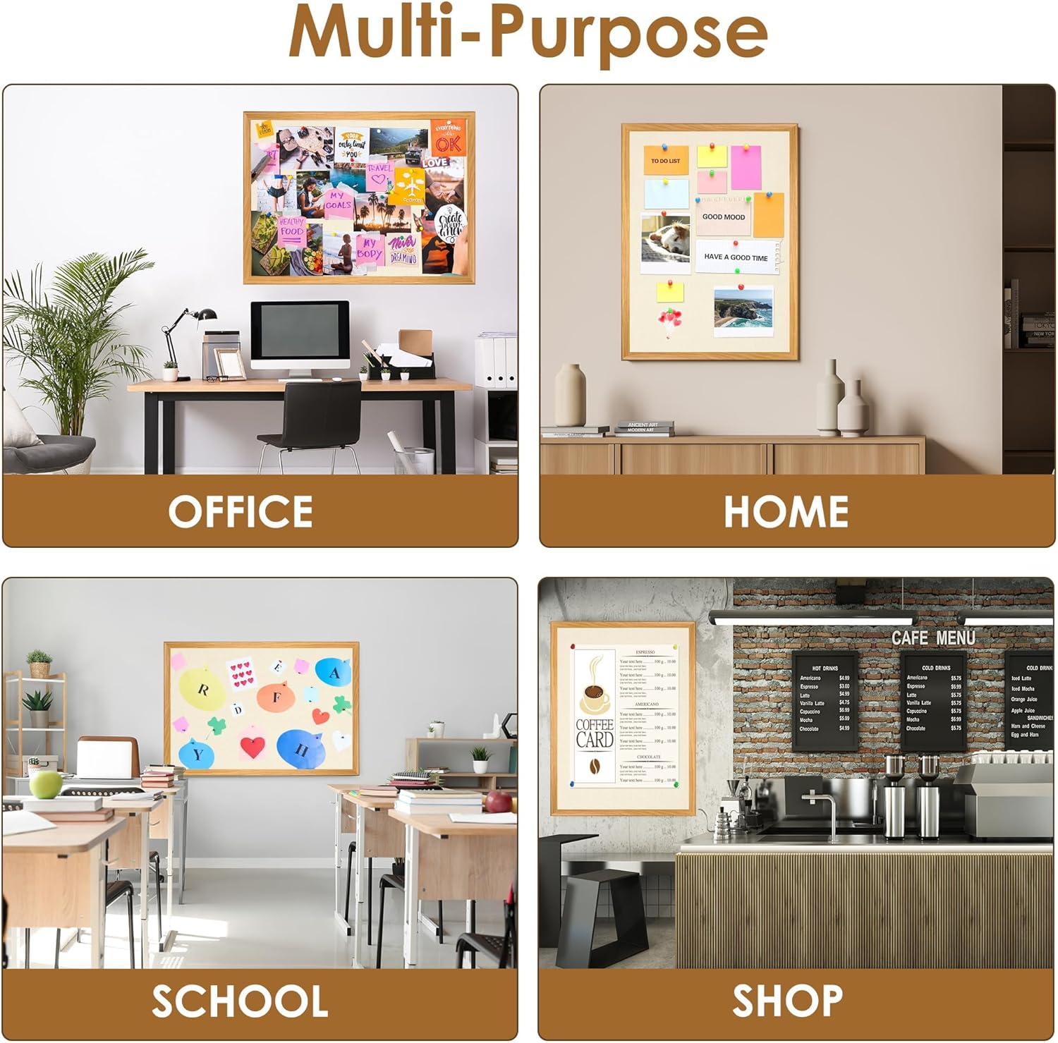 - Sturdy & Elegant Frame -- Our bulletin board comes with solid wooden frame, durable and good looking. No worry about warp or distortion. The elegant frame adds a smooth touch, enhancing your experience. With a clean and contemporary design, our memo board can fit your office and home decor well.