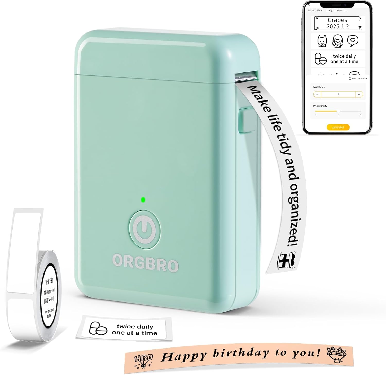 ORGBRO Label Maker Machine with Tape, X1 Portable Bluetooth Mini Label Printer, Support Pre-Cut & Continuous Label, Wireless Small Label Makers with Versatile App for School Home Office Organization