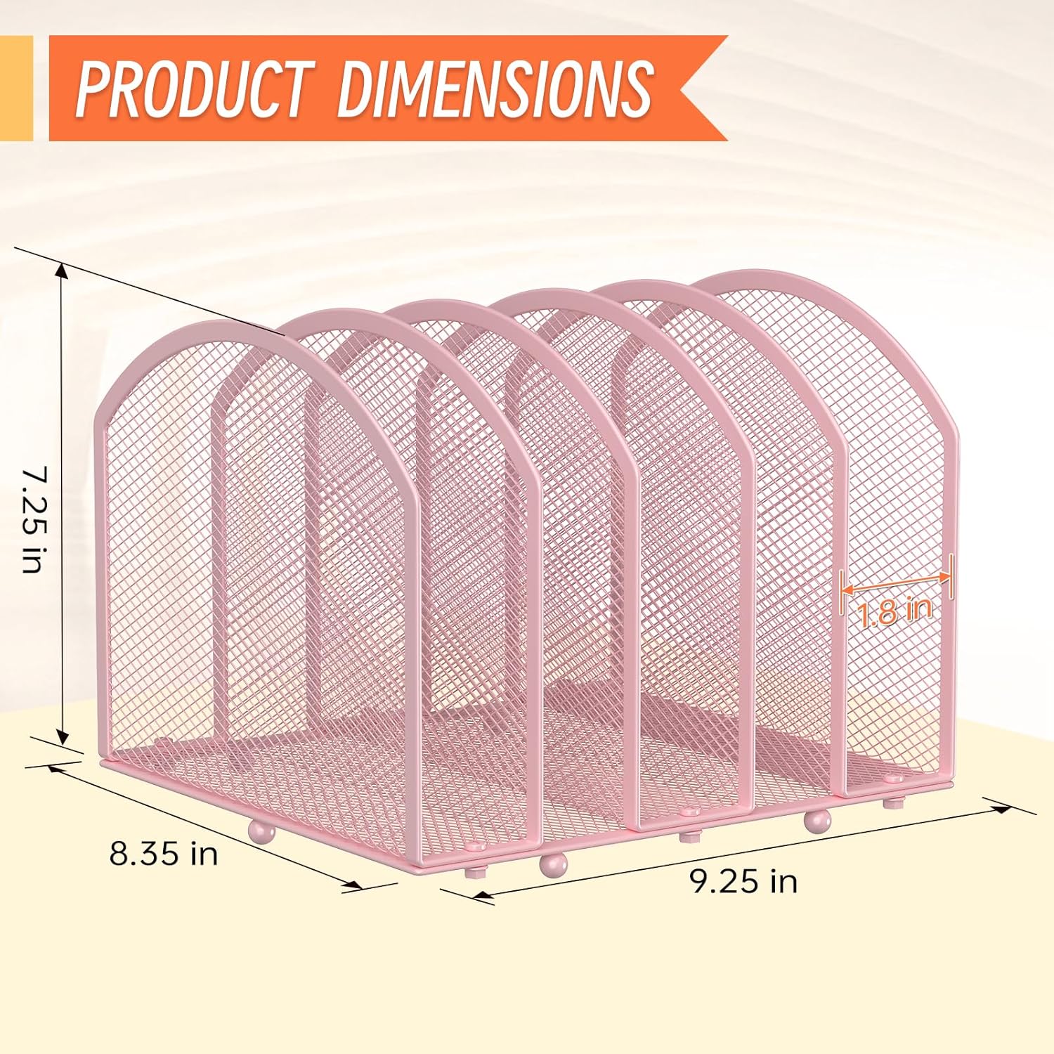 Desk File Organizer 5 Sections Desktop Organizer File Sorter Office Organization File Folder Holder for Office School & Classroom (Pink, 5 Section - 1Pack)