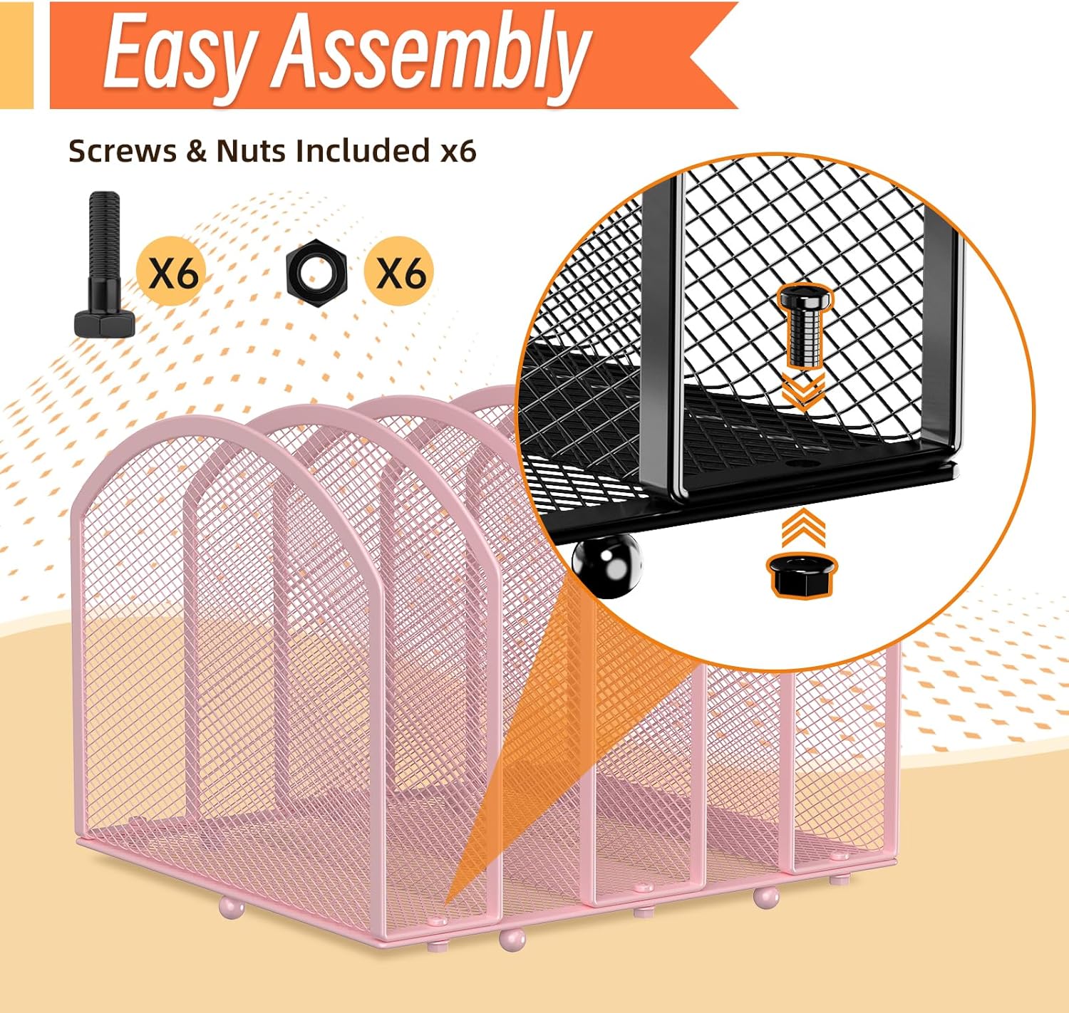 - Durable Metal Mesh Construction: Made of high-quality metal mesh, this desk file organizer is sturdy and sable, perfect for holding books, file folders, and papers without bending or wobbly