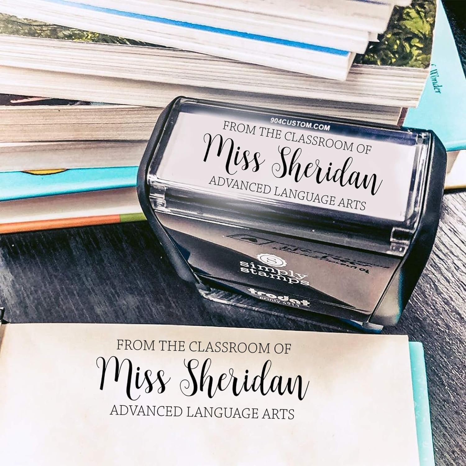 Custom Self-Inking Teacher Stamps | 49 Designs | Fun Phrases | Grading Made Easy | Classroom and Library Book Stamps (From The Classroom of Subject, Xtra Wide)