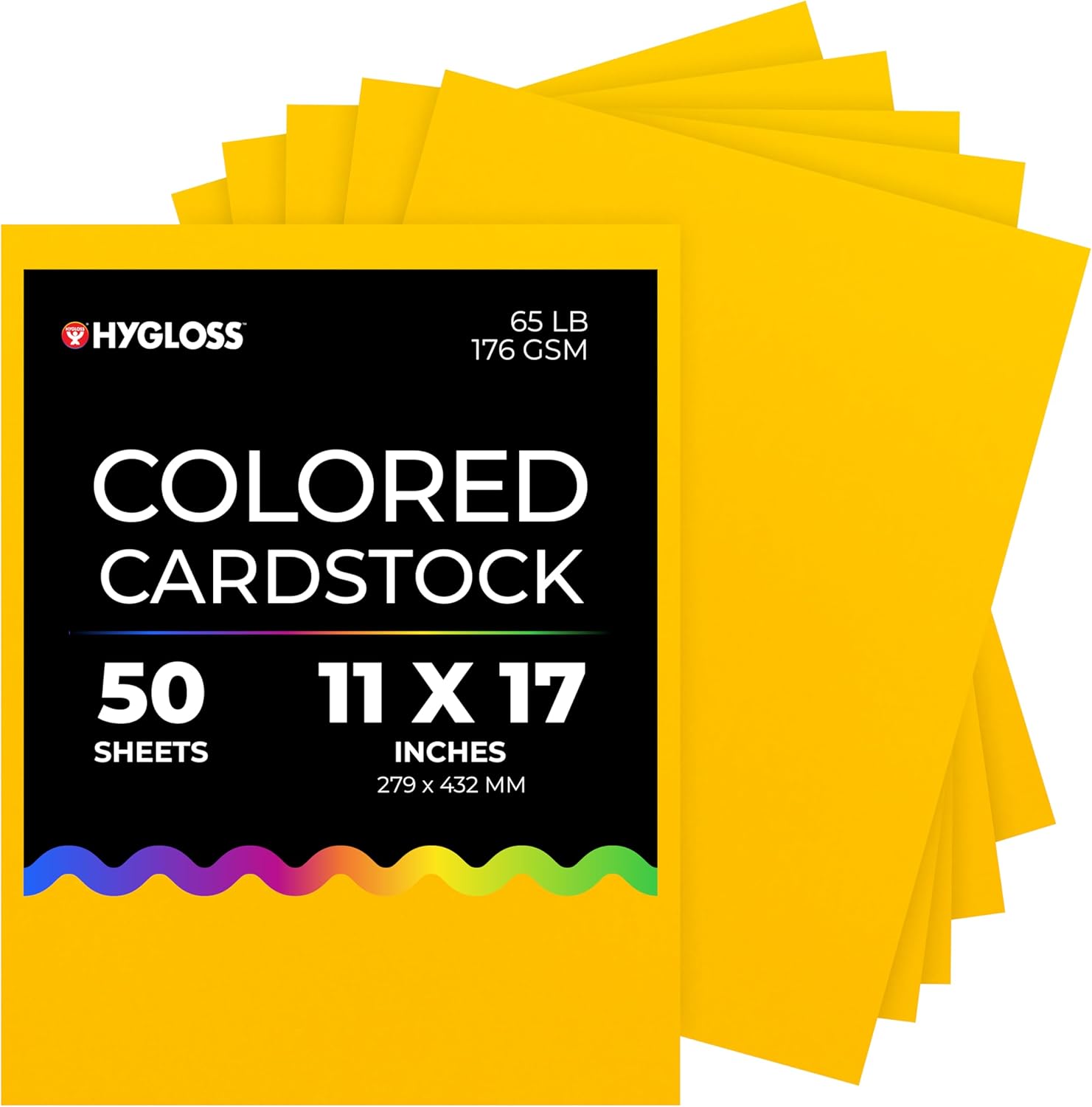 Hygloss Yellow Bright Colored Cardstock - 11x17-Inch, 50 Sheets, 65 lb/ 176 gsm, Fade-Resistant, Acid-Free Color Card Stock Paper