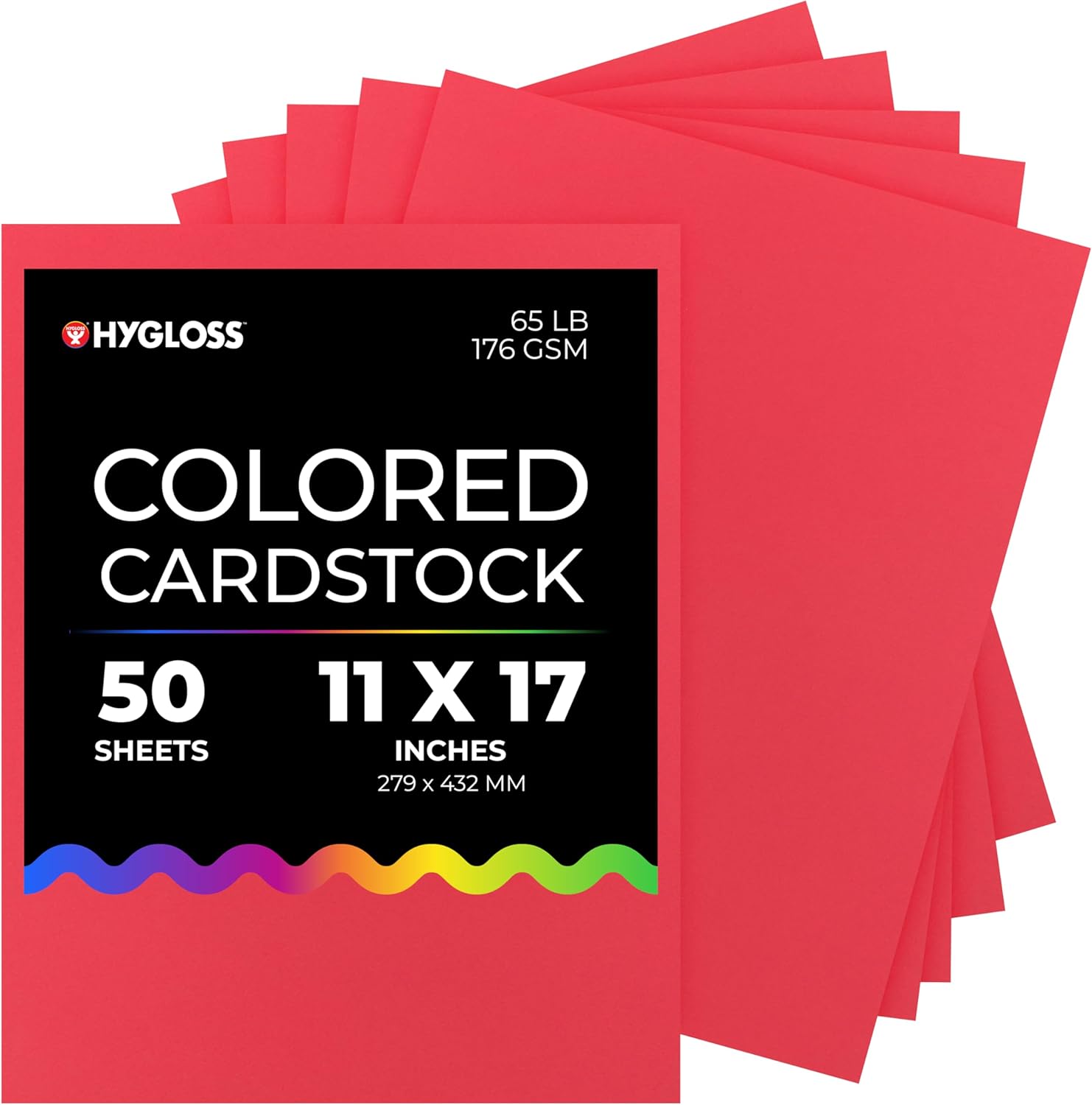 Hygloss Red Bright Colored Cardstock - 11x17-Inch, 50 Sheets, 65 lb/ 176 gsm, Fade-Resistant, Acid-Free Color Card Stock Paper