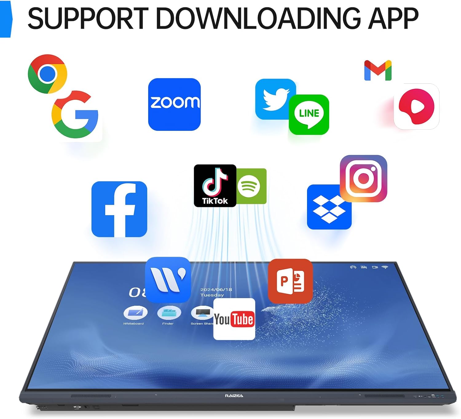 - 【Preloaded App Store & QR Code File Sharing】Access various office software and educational tools on this Android 11 smartboard. Instantly share notes by generating QR codes—scan to save files to phones, tablets, or laptops.