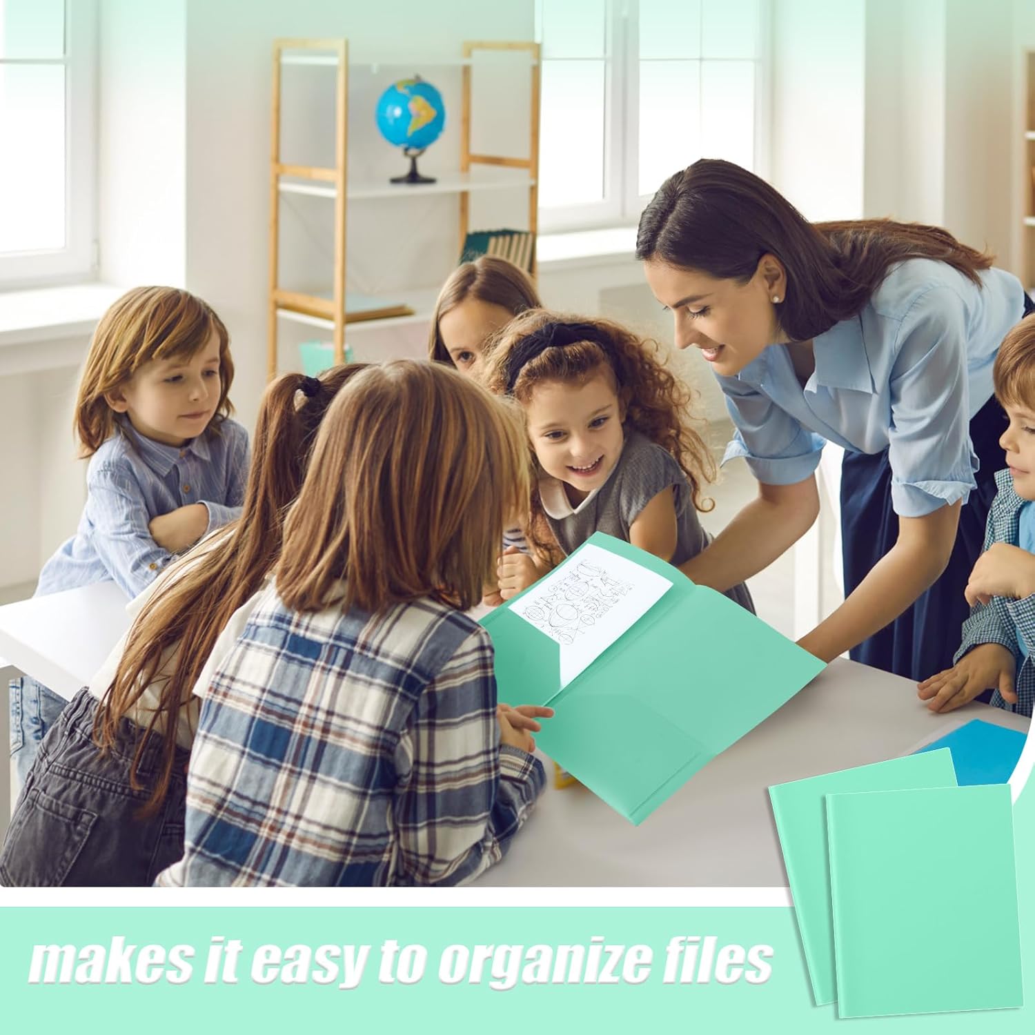 Gueevin 50 Pcs Plastic Folders with Pockets, Back to School Two Pocket Folder Fit Letter Size, Heavy Duty School Business Card Holder for Home Office, 11. 61 x 9. 45 Inches (Light Green)