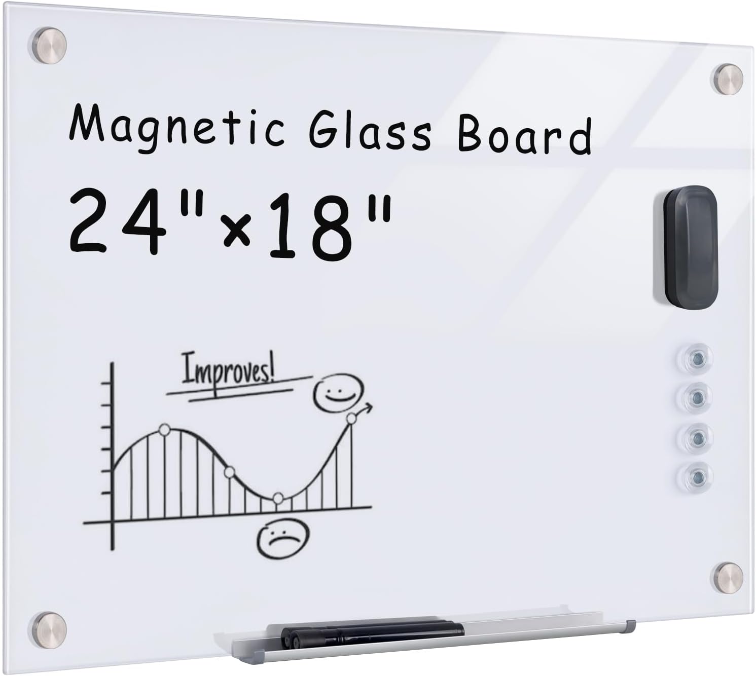 - ✔ 【Strong Magnetic Capabilities】Featuring a steel-backed surface, our board includes 4 super-strong magnets designed specifically for glass boards. Easily post documents, notes, or reminders—perfect for meetings, brainstorming, or home organization. (Standard magnets may not work due to glass thickness.)