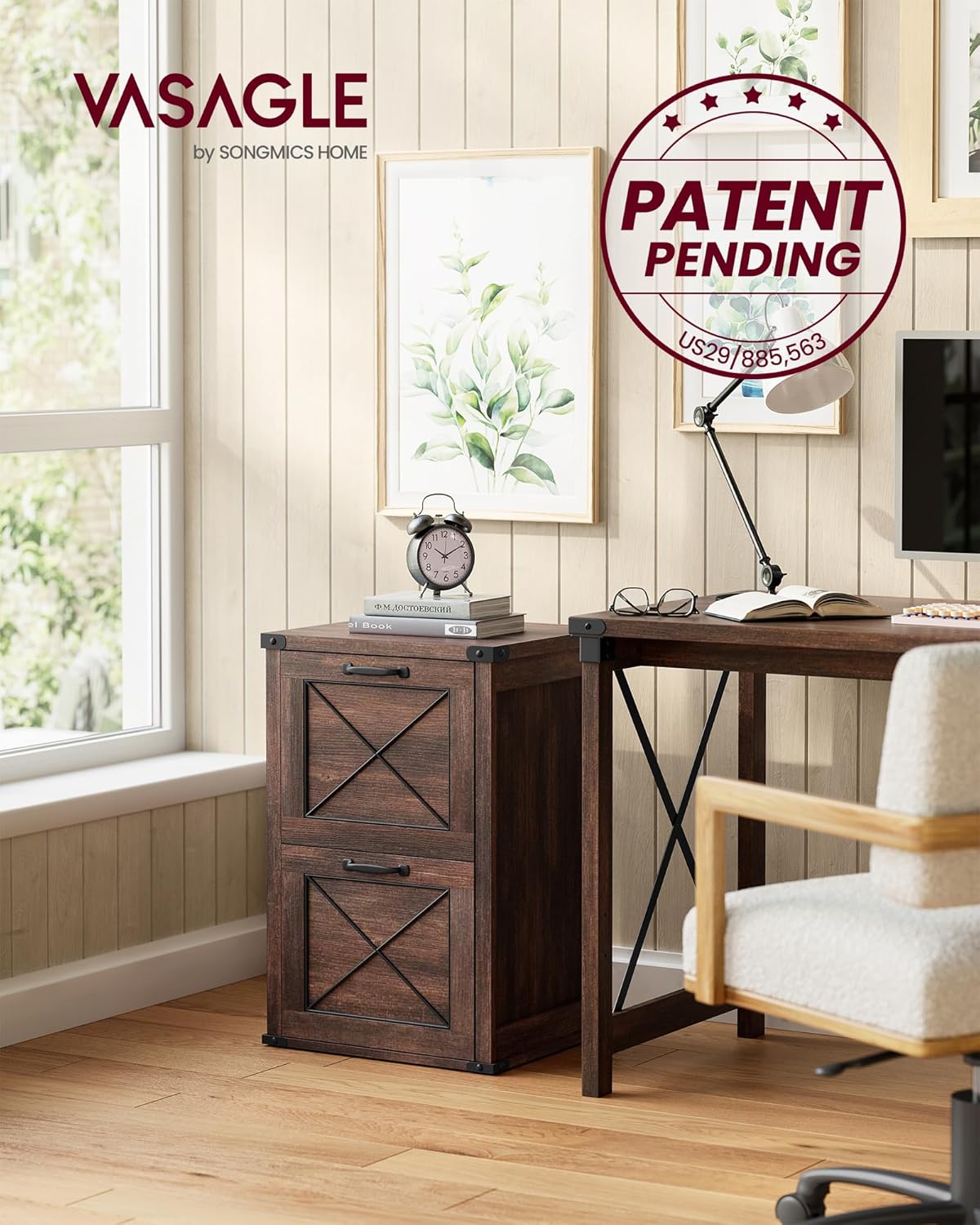VASAGLE File Cabinet, Filing Cabinet with 2 File Drawers, Printer Stand, Fit A4, Letter Size, Hanging File Folders, Modern Farmhouse Style, for Home Office, Maroon Brown UOFC048K01