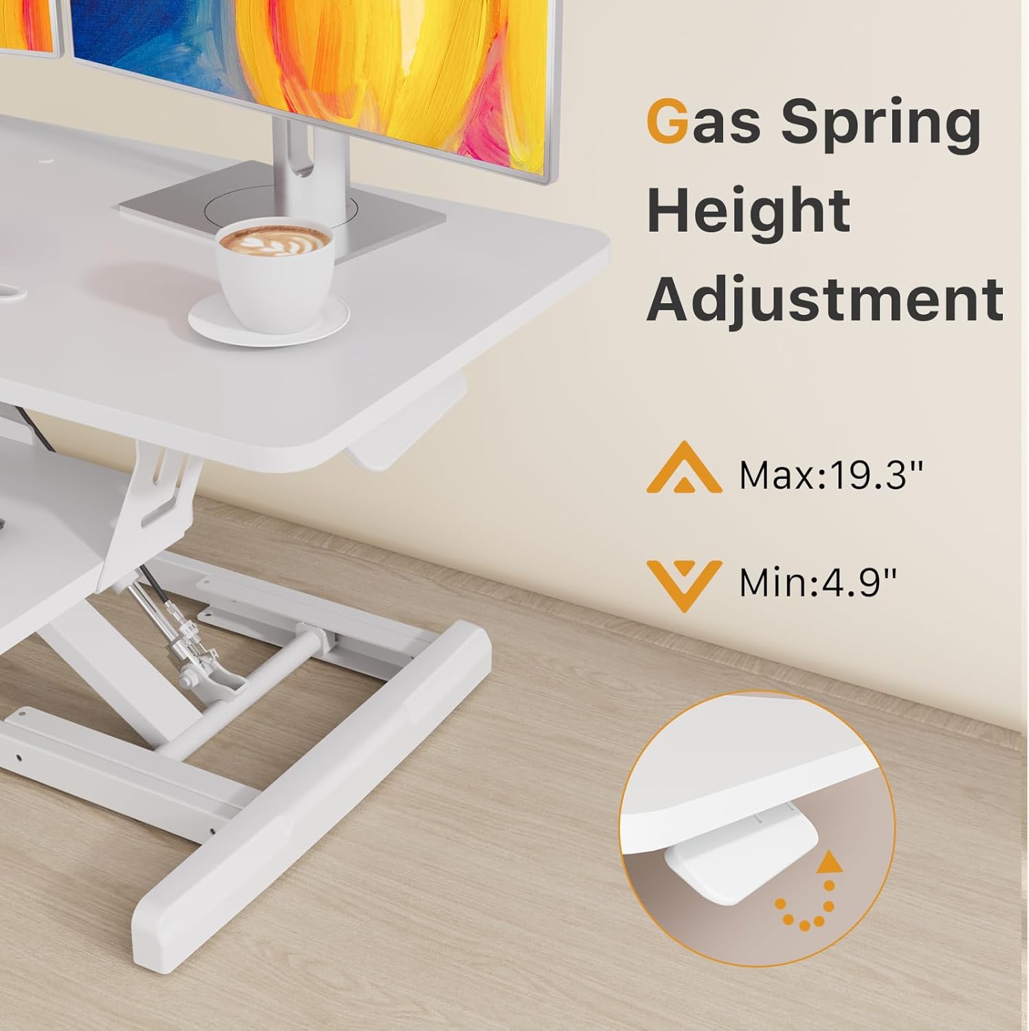 JOY worker Standing Desk Converter, 35" Wide Height Adjustable Sit Stand Up Desk Riser with Keyboard Tray, Desktop Workstation Riser for Home Office Computer Laptop, Particle Board, White
