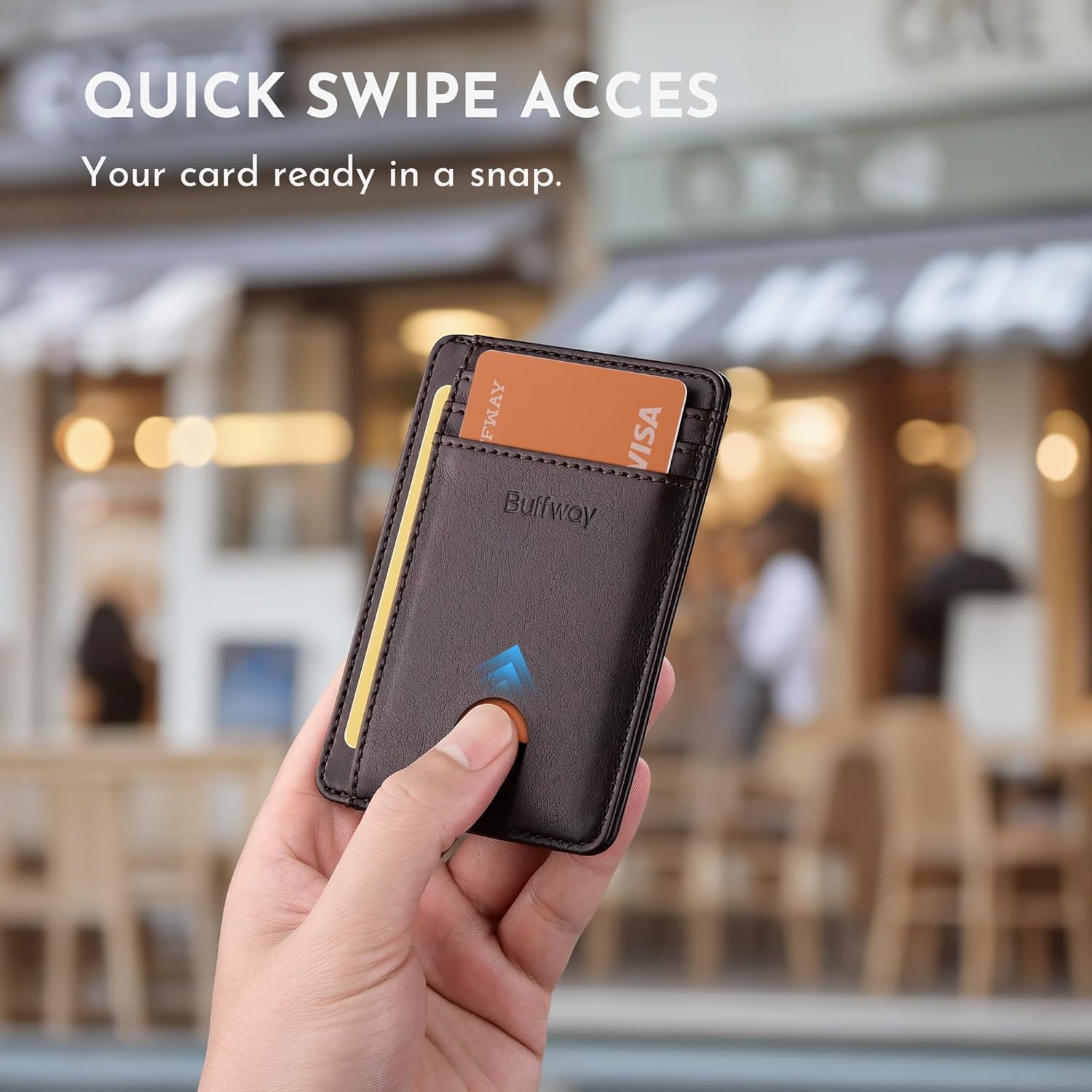 Buffway Slim Minimalist Front Pocket RFID Blocking Leather Wallets for Men and Women - Pebble Brown