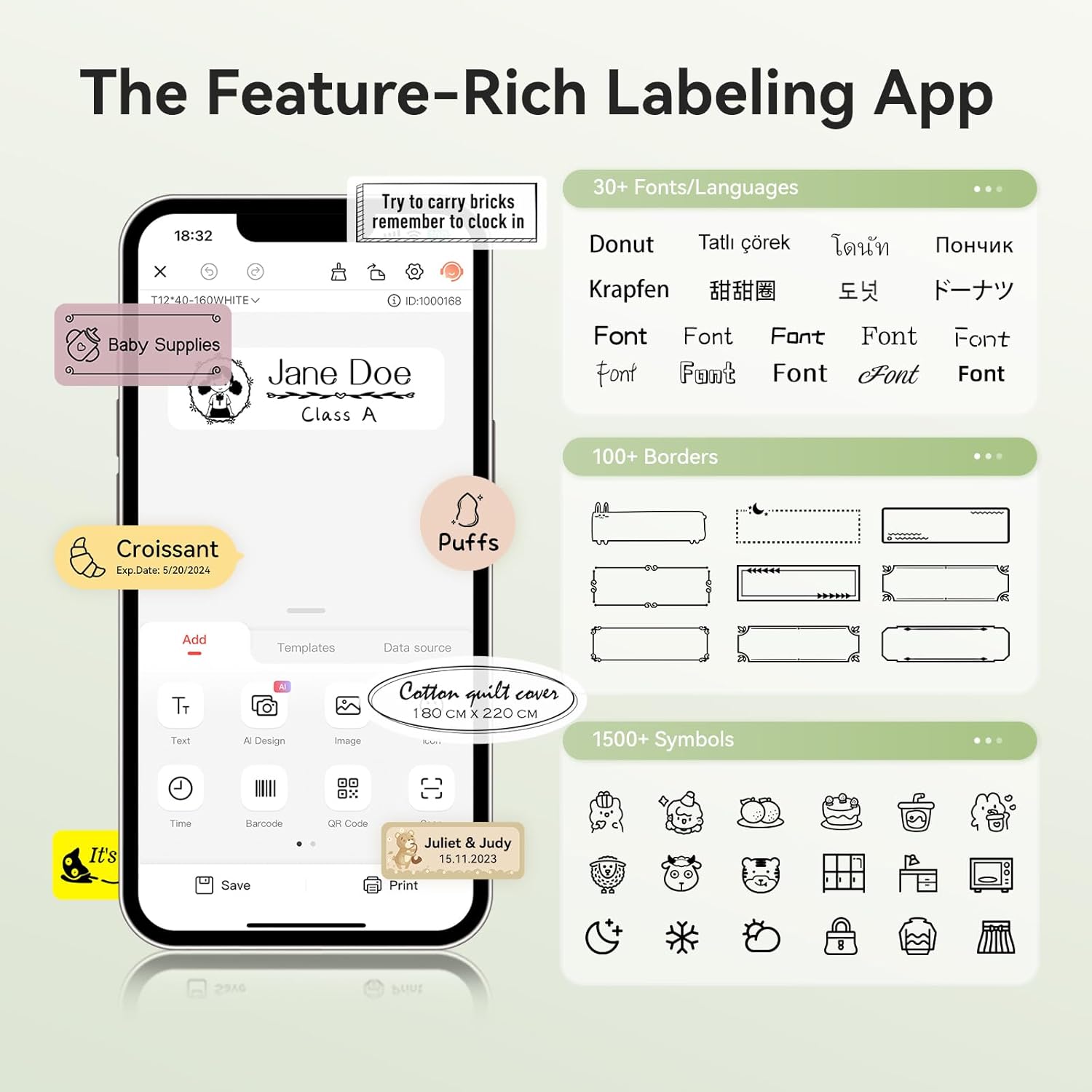- 【Ideal Gifts】The NIIMBOT D110 Sticker Printer Machine is used widely in organizing home supplies - storage, food date marking, classifying cosmetics items, jar stickers; School name labels, study note and office files classification, cable identification, personal item identification, name tags; Small business - price tags, jewelry tags and more.