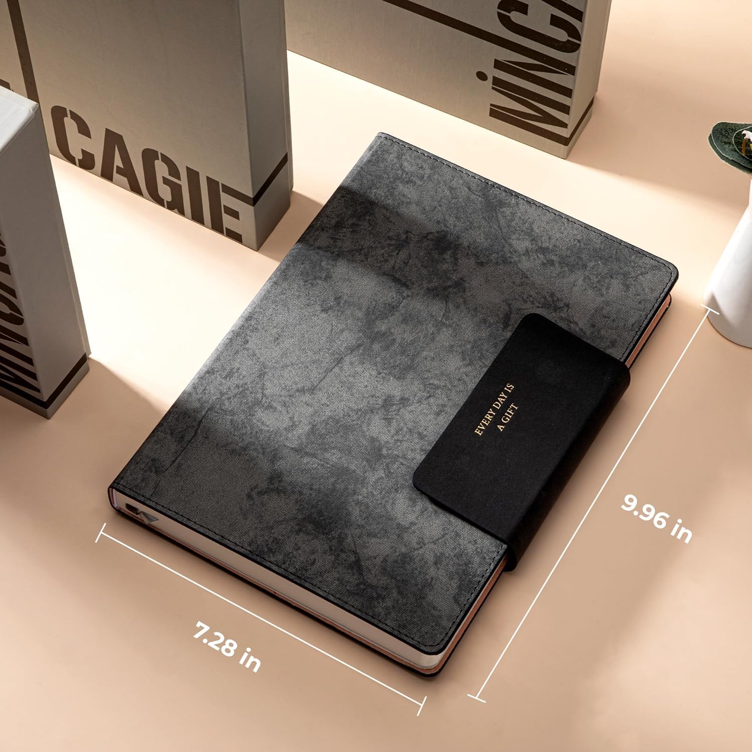 - Sleek Functionality: A magnetic square closure replaces traditional straps, ensuring secure closure and doubling as a hidden pen loop. Perfect for on-the-go use with its B5 large notebook size and 180° flat-lay design.