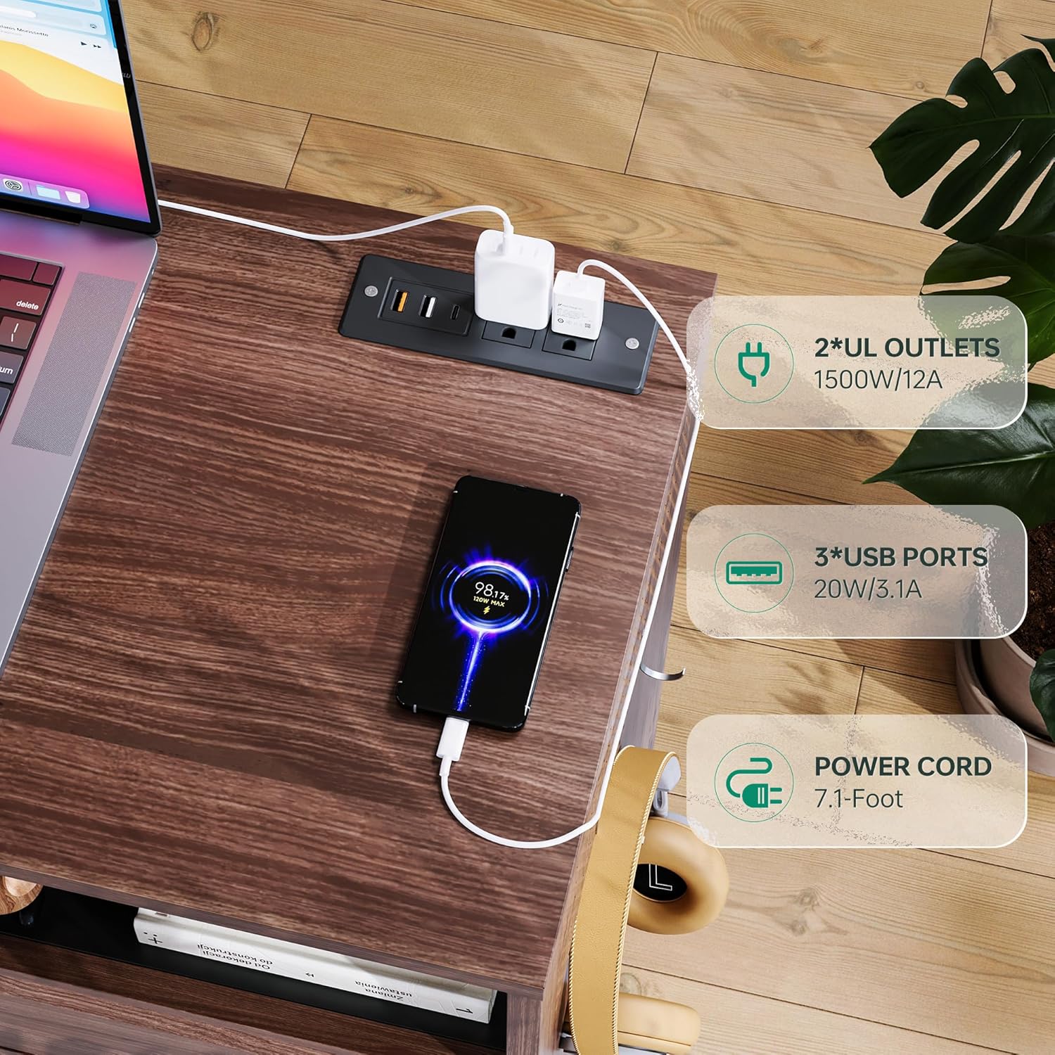 • 『Charging Easier』Home Office Filing Cabinet has 2 built-in power outlets(1500W/12A) and 2 USB 1 Type-C(20W/3.1A)charging ports to power up to 5 devices simultaneously,file cabinet can charge your printer, lamp, phone, Ipad, laptop simultaneously during work or study.
