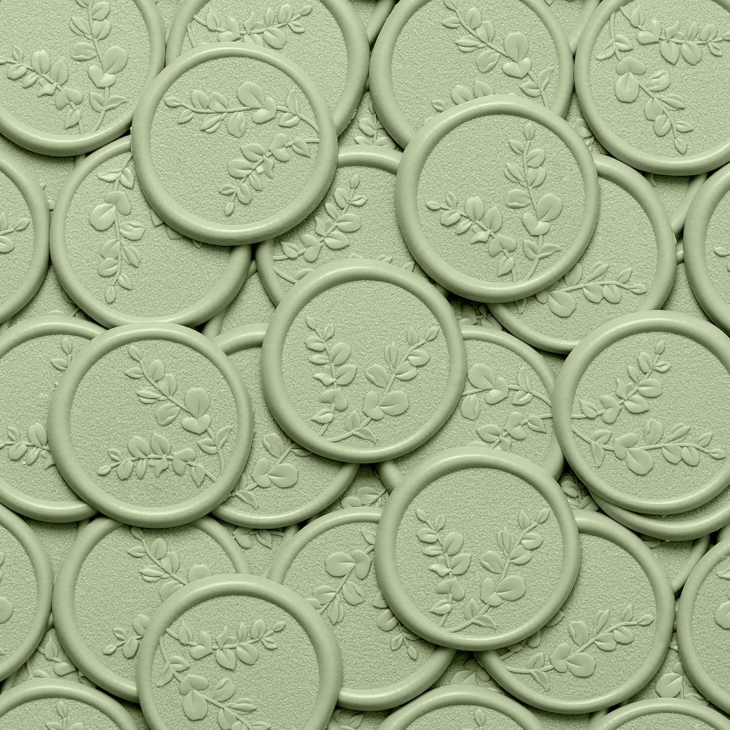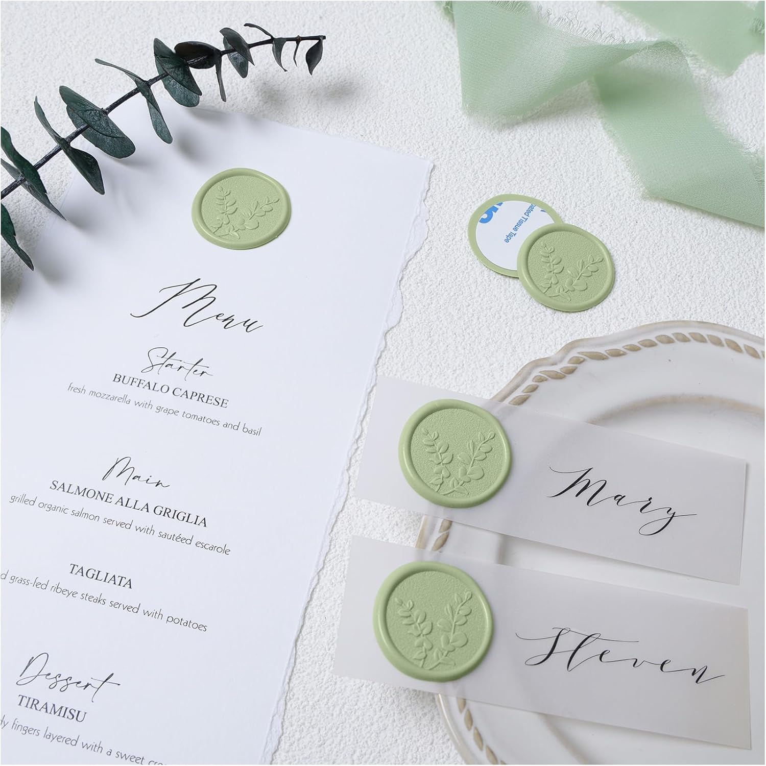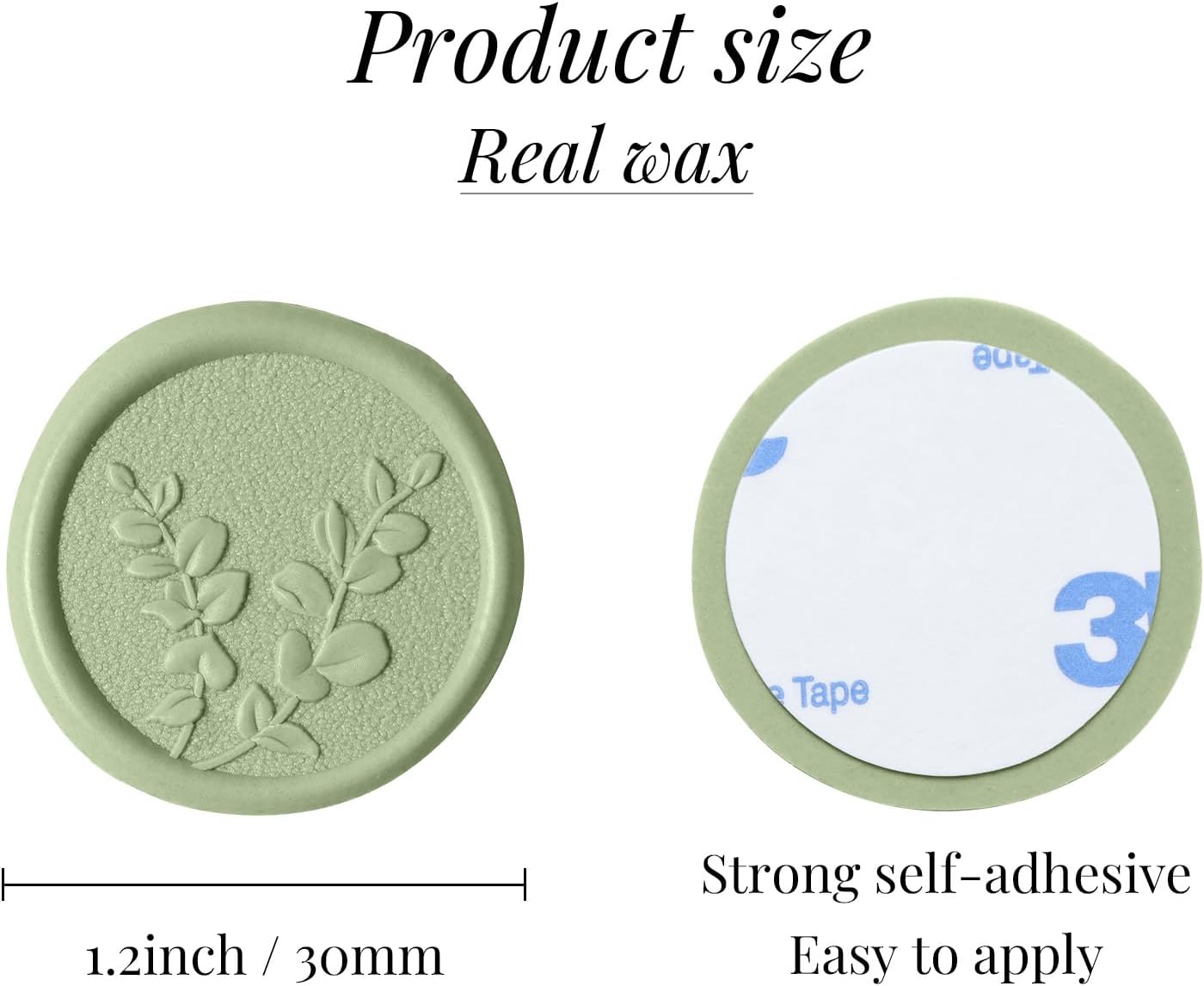 - PACKAGE INCLUDES - You will receive 50 pieces of sage green color wax seal stickers in eucalyptus leaves designs. The wax seal sticker diameter is 1.2 inches/30mm and with almost the same size of adhesive on the back. Weighs 0.02oz per seal and may add weight to envelopes.
