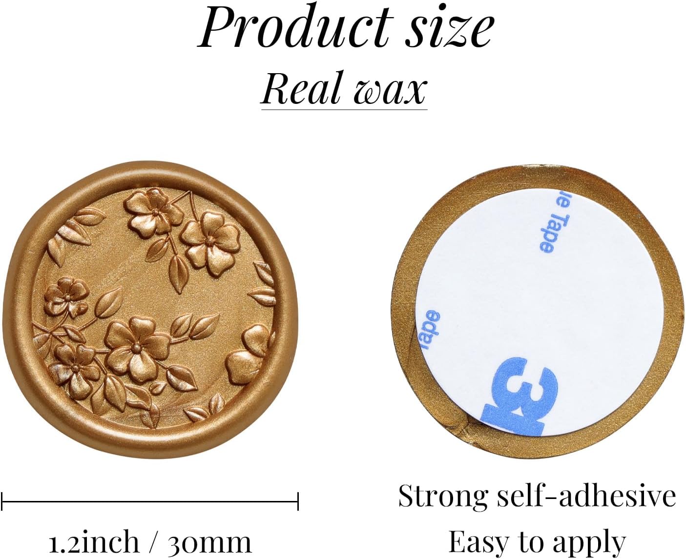 - PACKAGE INCLUDES - You will receive 50 pieces of antique gold color wax seal stickers in begonia flower designs. The wax seal sticker diameter is 1.2 inches/30mm and with almost the same size of adhesive on the back. Weighs 0.02oz per seal and may add weight to envelopes.