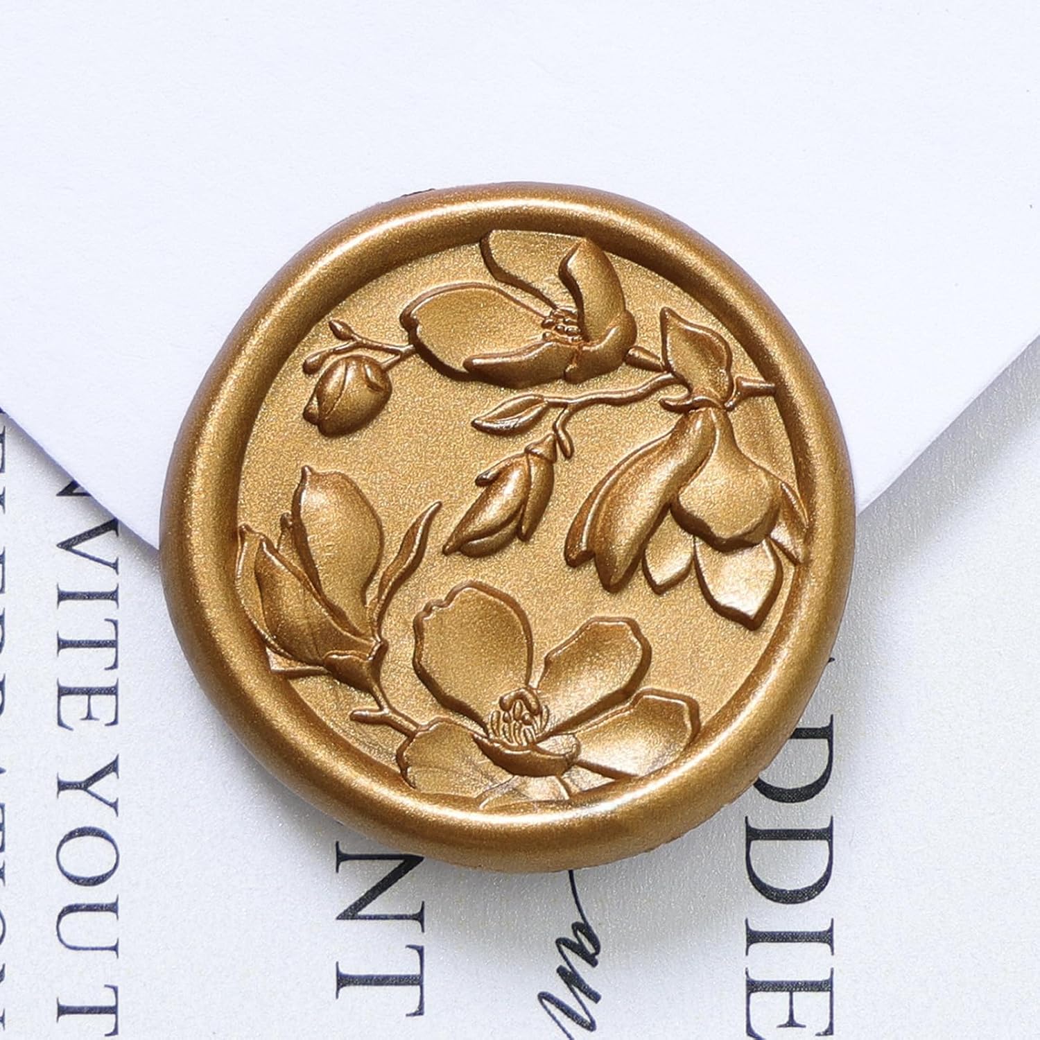 - PACKAGE INCLUDES - You will receive 50 pieces of antique gold color wax seal stickers in magnolia designs. The wax seal sticker diameter is 1.2 inches/30mm and with almost the same size of adhesive on the back. Weighs 0.02oz per seal and may add weight to envelopes.