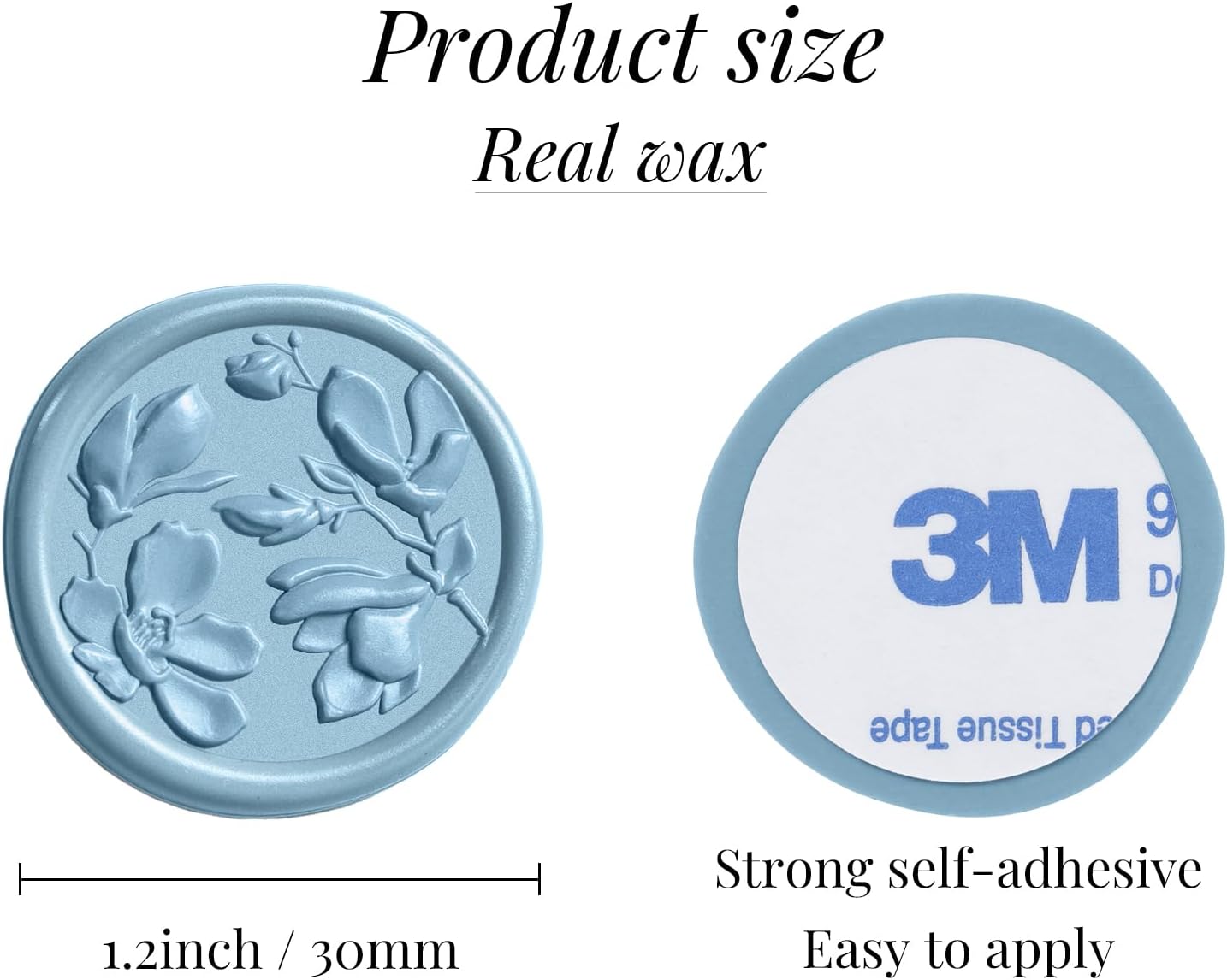 - PACKAGE INCLUDES - You will receive 50 pieces of dusty blue color wax seal stickers in magnolia designs. The wax seal sticker diameter is 1.2 inches/30mm and with almost the same size of adhesive on the back. Weighs 0.02oz per seal and may add weight to envelopes.