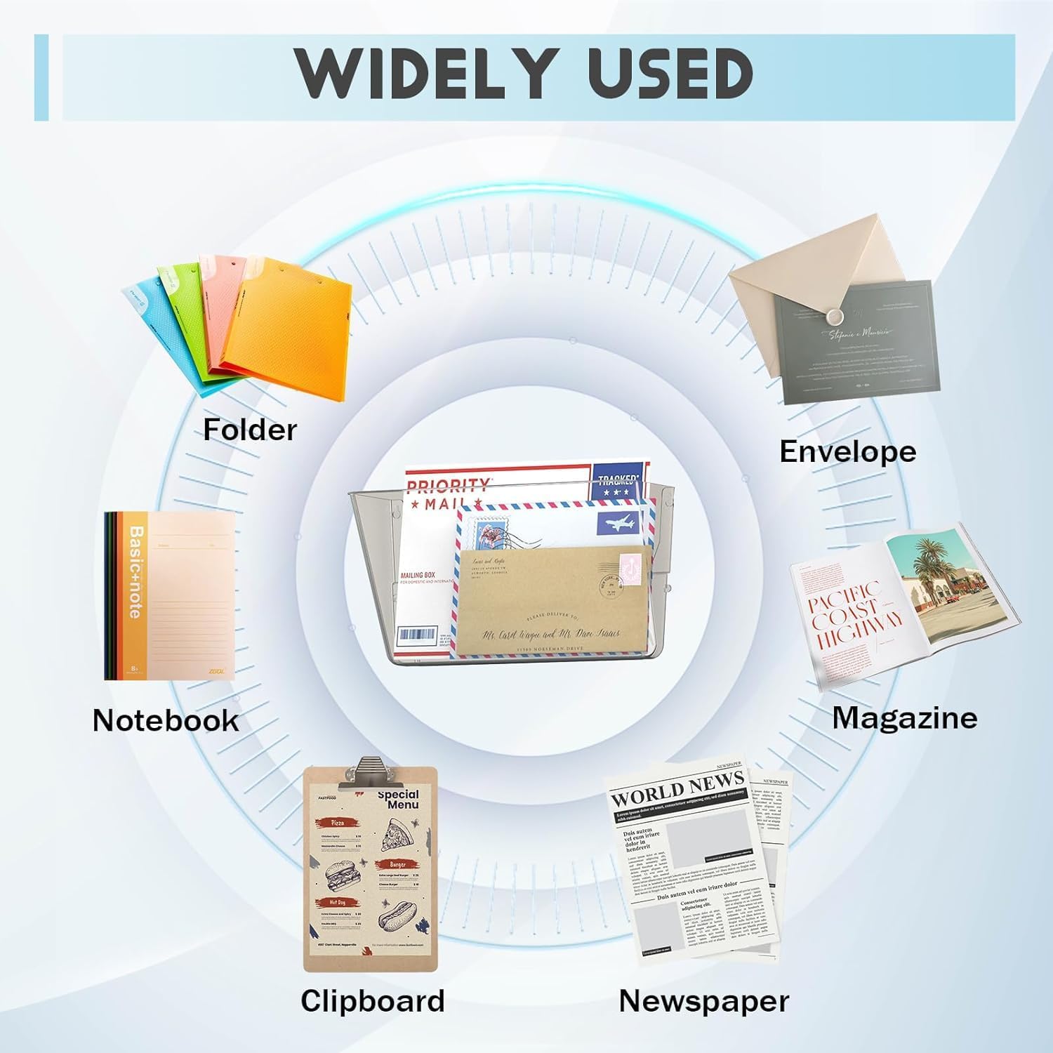 - 【Dimensions in Inches 】Each 13.9 x 4.1(top)/2(bottom) x 8.5 inches, suitable for A4 size folders, files, papers and other letter-sized paper products.