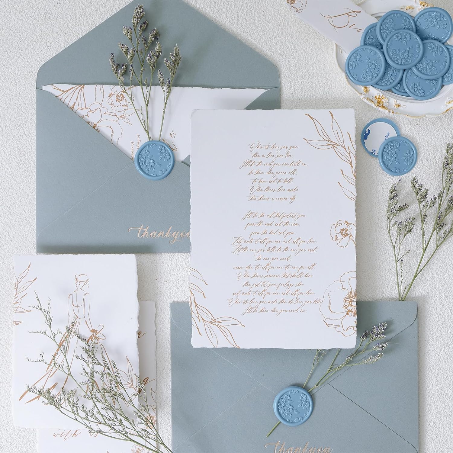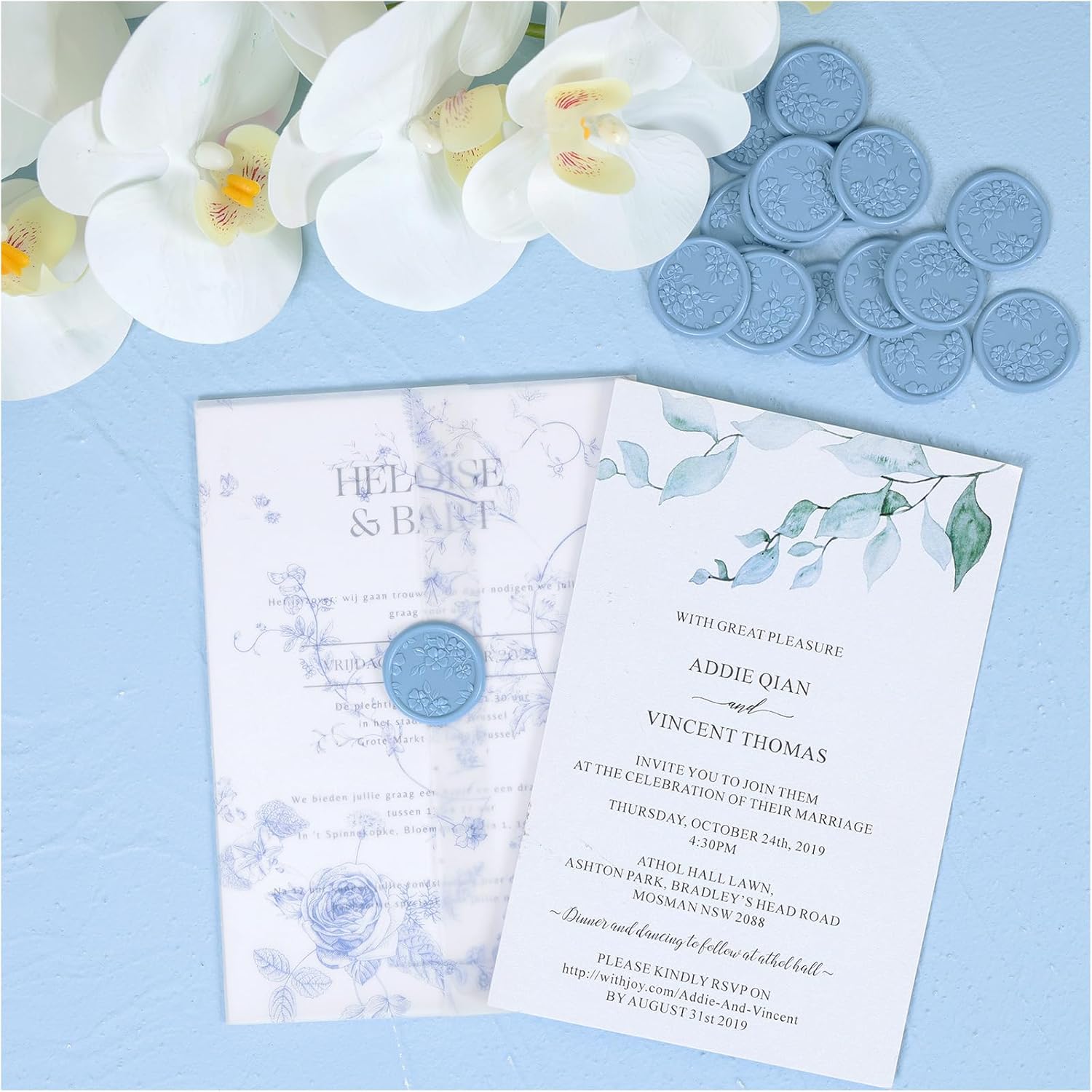 - PACKAGE INCLUDES - You will receive 50 pieces of dusty blue color wax seal stickers in begonia flower designs. The wax seal sticker diameter is 1.2 inches/30mm and with almost the same size of adhesive on the back. Weighs 0.02oz per seal and may add weight to envelopes.