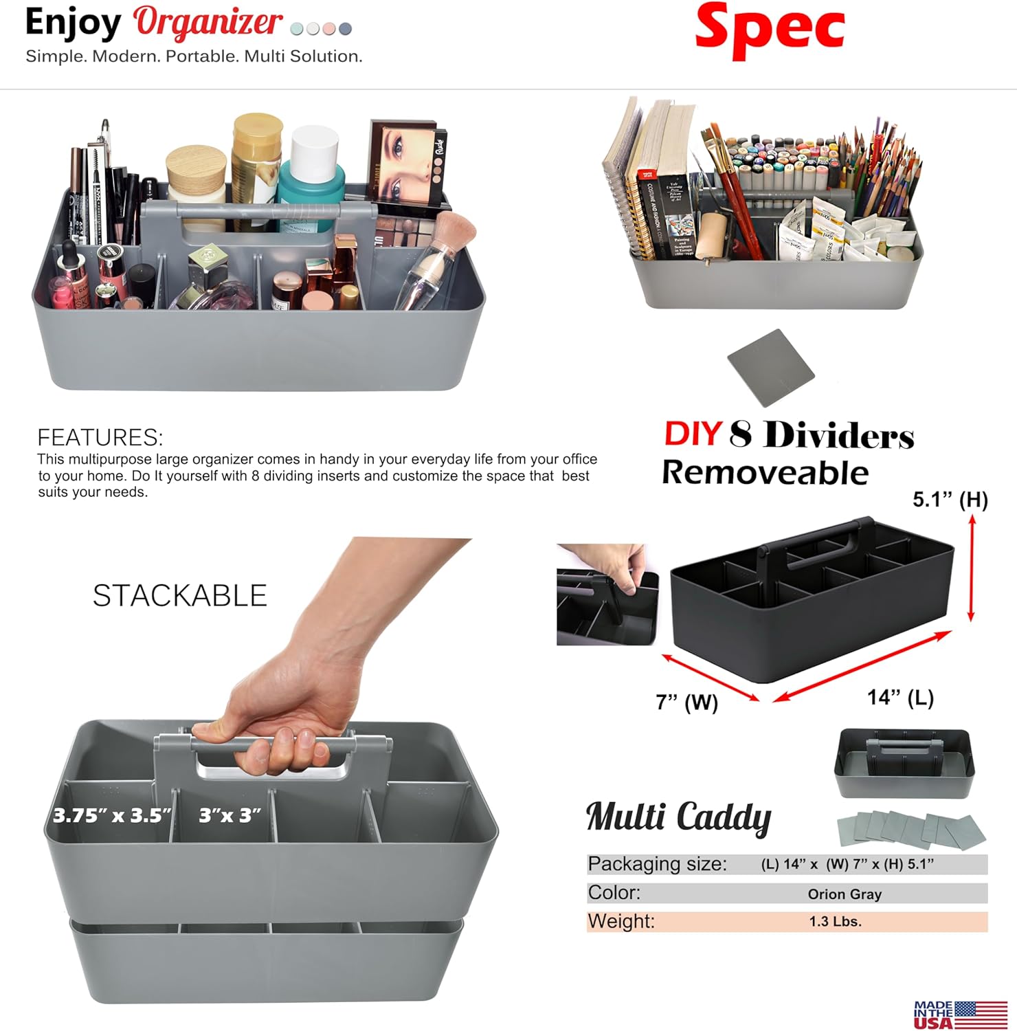 - FUNCTIONAL & VERSATILE: This caddy is incredibly versatile, able to store a multitude of household items like cleaning products, medical supplies, cosmetics, toys, lotions, laundry needs, office or school supplies, and more. The options are endless. Itβs perfect for college dorm rooms, apartments, condos, RVs, boats, cabins, and campers. Use this multi-purpose caddy anywhere you need to add storage and get organized. Ideal for both home and professional organizers.