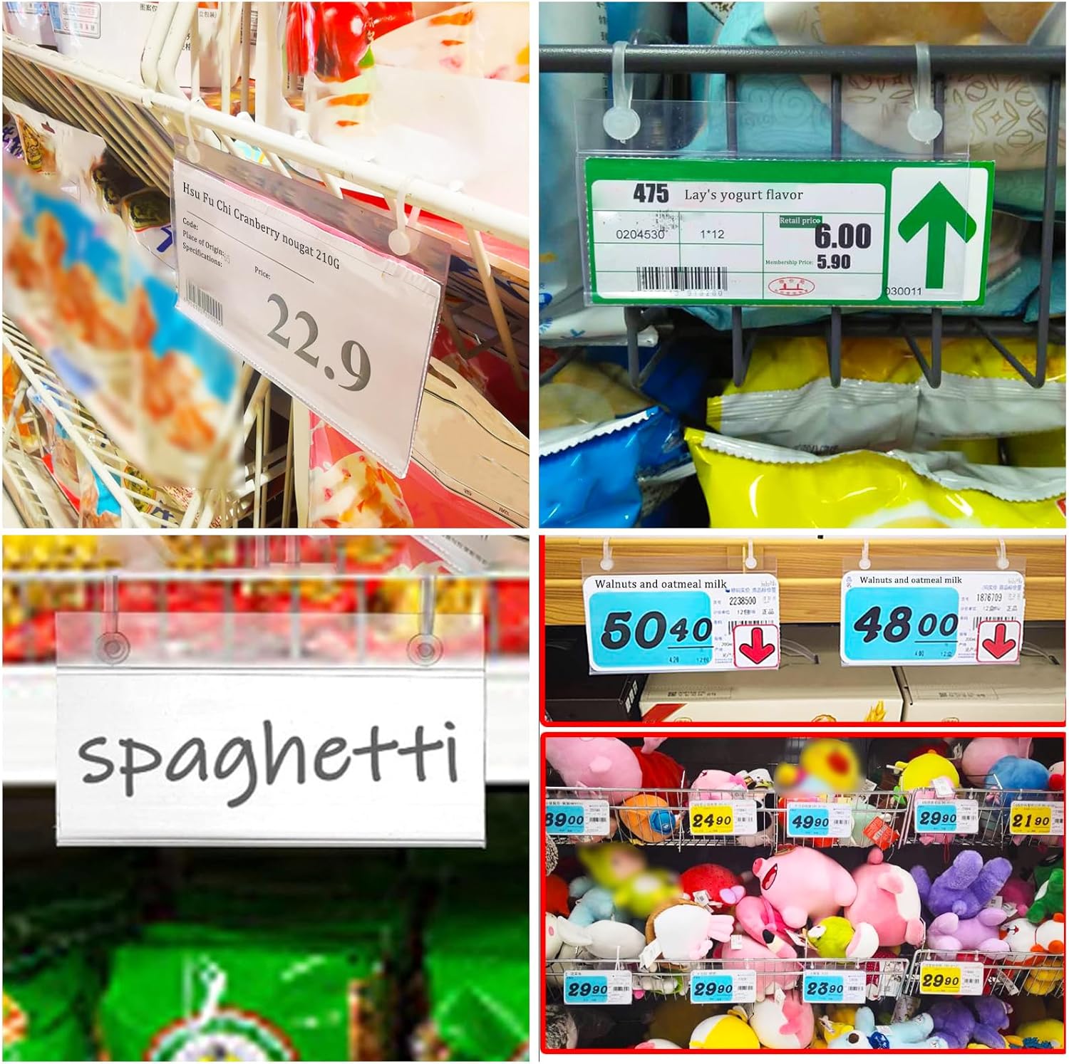 - Universal Size: The price tag holders measure 4"L x 2.3"W,suitable for price label 4"L x 1.7"W.This size will fit most shelves,can be applied to display business cards,product labels etc.Please measure your wire rack and check the size before ordering.