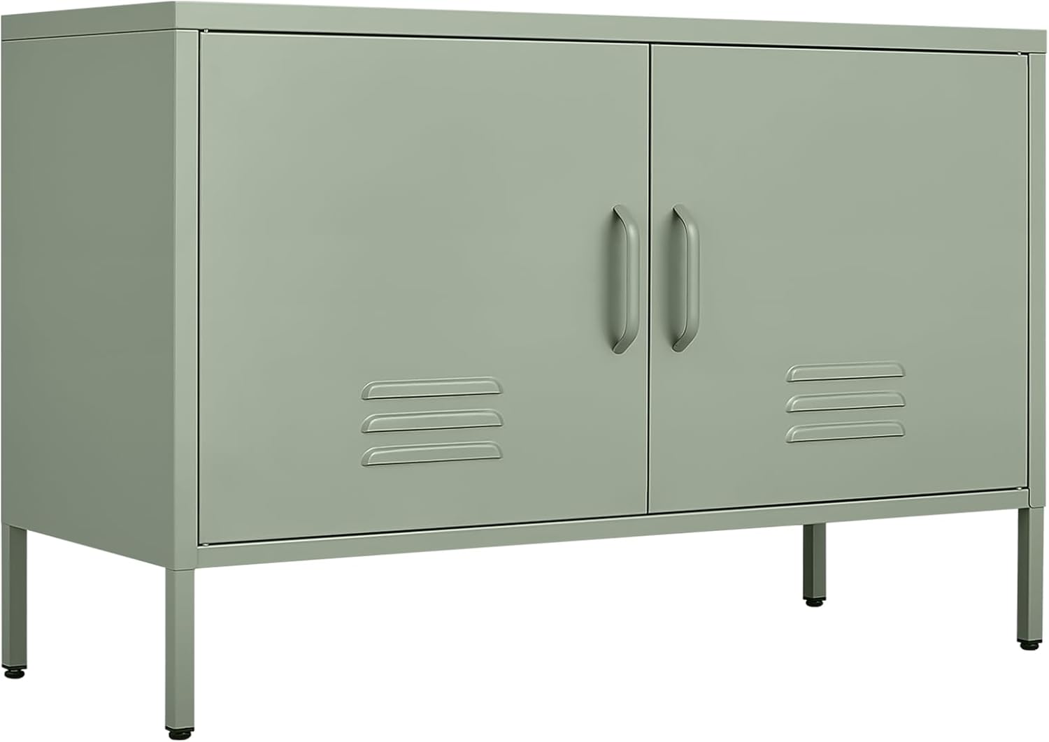 - 【Uniqe Designs】This green metal cabinet for bedroom is designed with air vent holes for proper air ventilation,adjustable non-slip feet to adapting to uneven floor,Console cabinet with doors adds extra space,and protects your items from light exposure,dirt and dust.