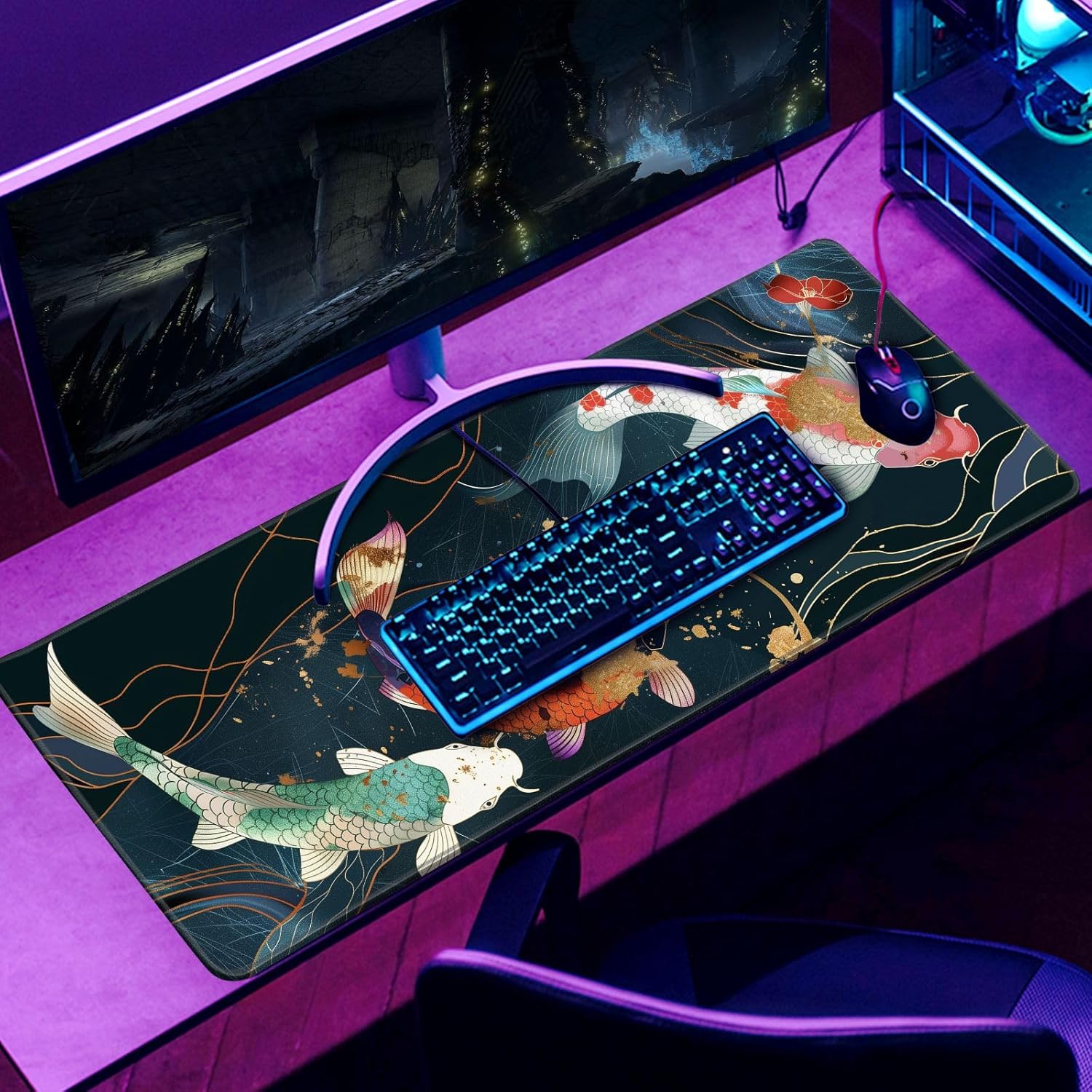 Japanese Koi Fish Gaming Mouse Pad Desk Mat Kawaii Mousepad Mouse Pad, Extra Large Deskmat Cut Laptop Mouse Pads Decor-Colorful Leaves