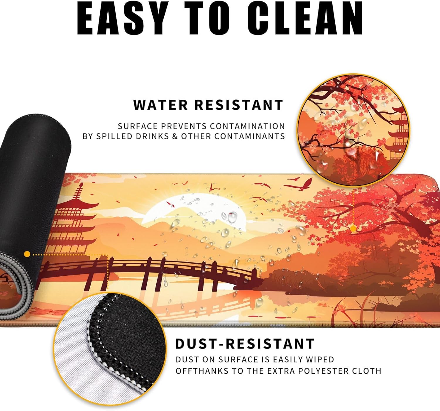 Japanese Cherry Blossom Desk Mat Anime Gaming Mouse Pad Large Desk Pad for Desk Computer Pc Laptop Office Decor, Mouse Keyboard Pad Stitched Edges Non-Slip Rubber Mat Desk Pad, 31.5x11.8 in