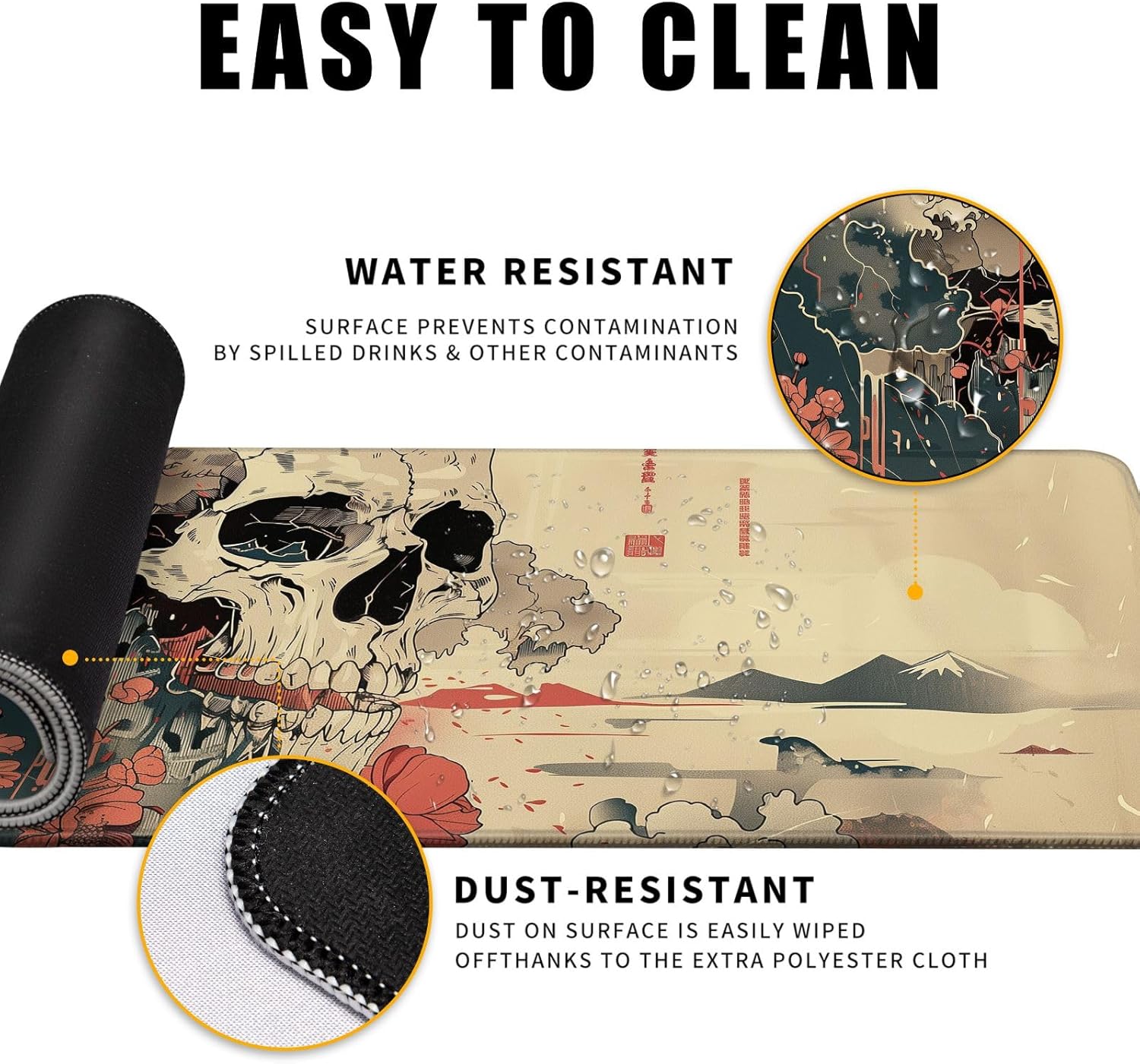 Skull Mouse Pad Japanese Ukiyo-e Mouse Pad XL Anime Big Mouse Pads for Desk Large Gaming Large Mouse Pad for Men Desk Pad with Stitched Edges Non-Slip Large Computer Mat, 31.5x11.8 in