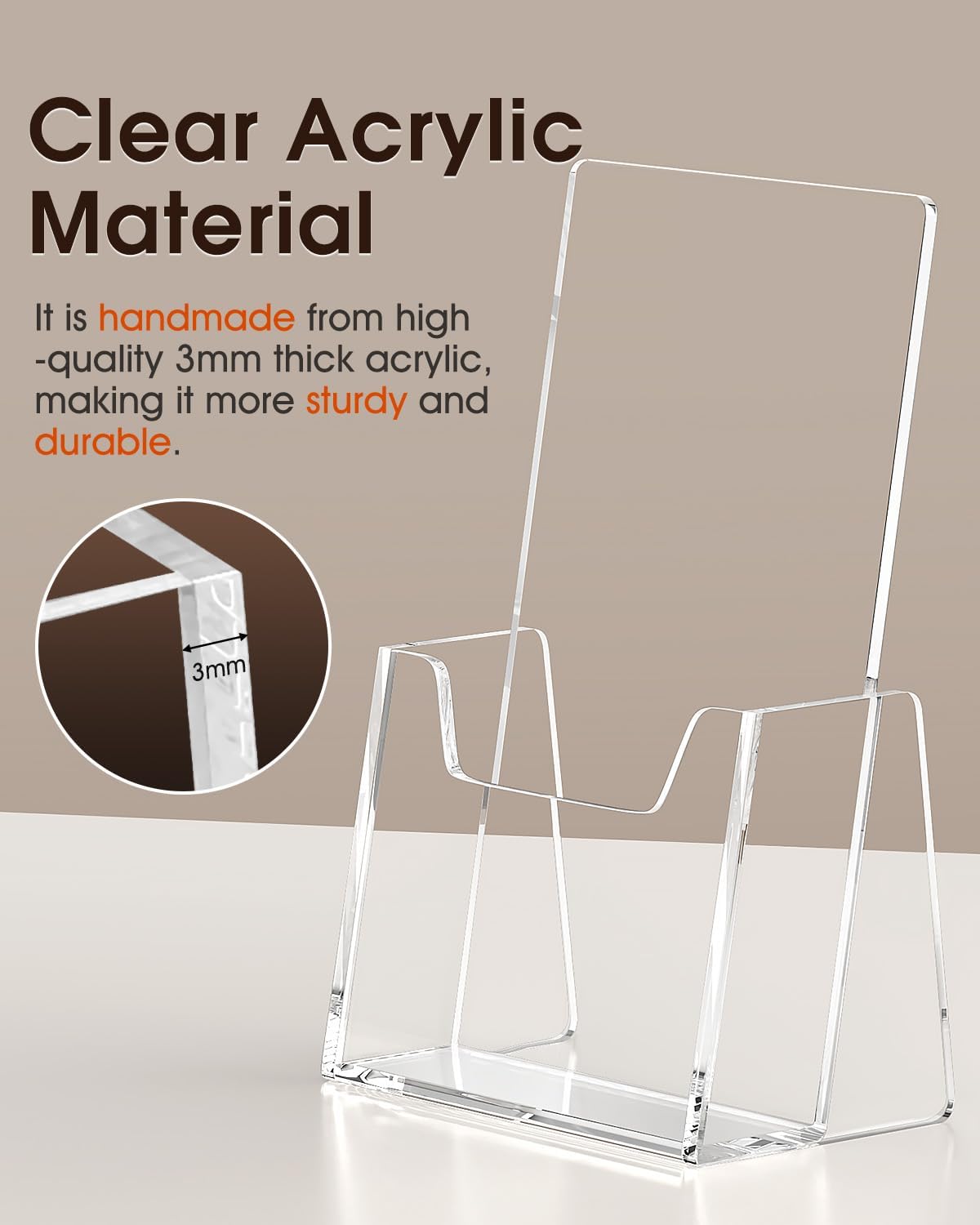 - Premium Acrylic: MaxGear Brochure Holder is handmade from high-quality 3mm thick acrylic, making it more sturdy and durable. Its transparent texture remains clear and does not yellow, even with continuous sunlight exposure. Reusable and resistant to damage, it offers long-lasting reliability.