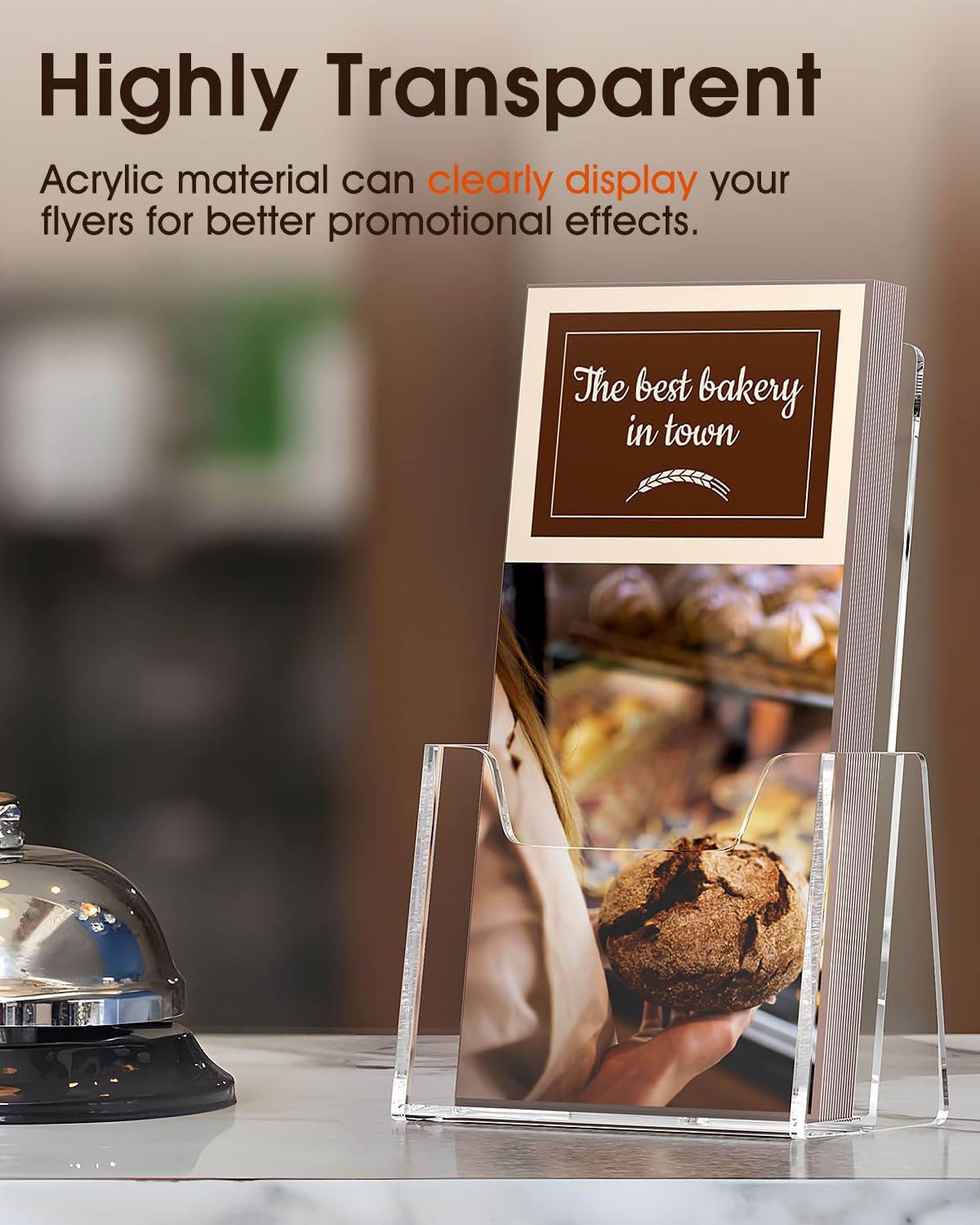 - Clear Display: Acrylic material offers superior transparency compared to PS, ensuring clear display of your brochures. Ideal for enhancing promotional impact in offices, stores, schools, weddings, restaurants, hotels, and various exhibitions.
